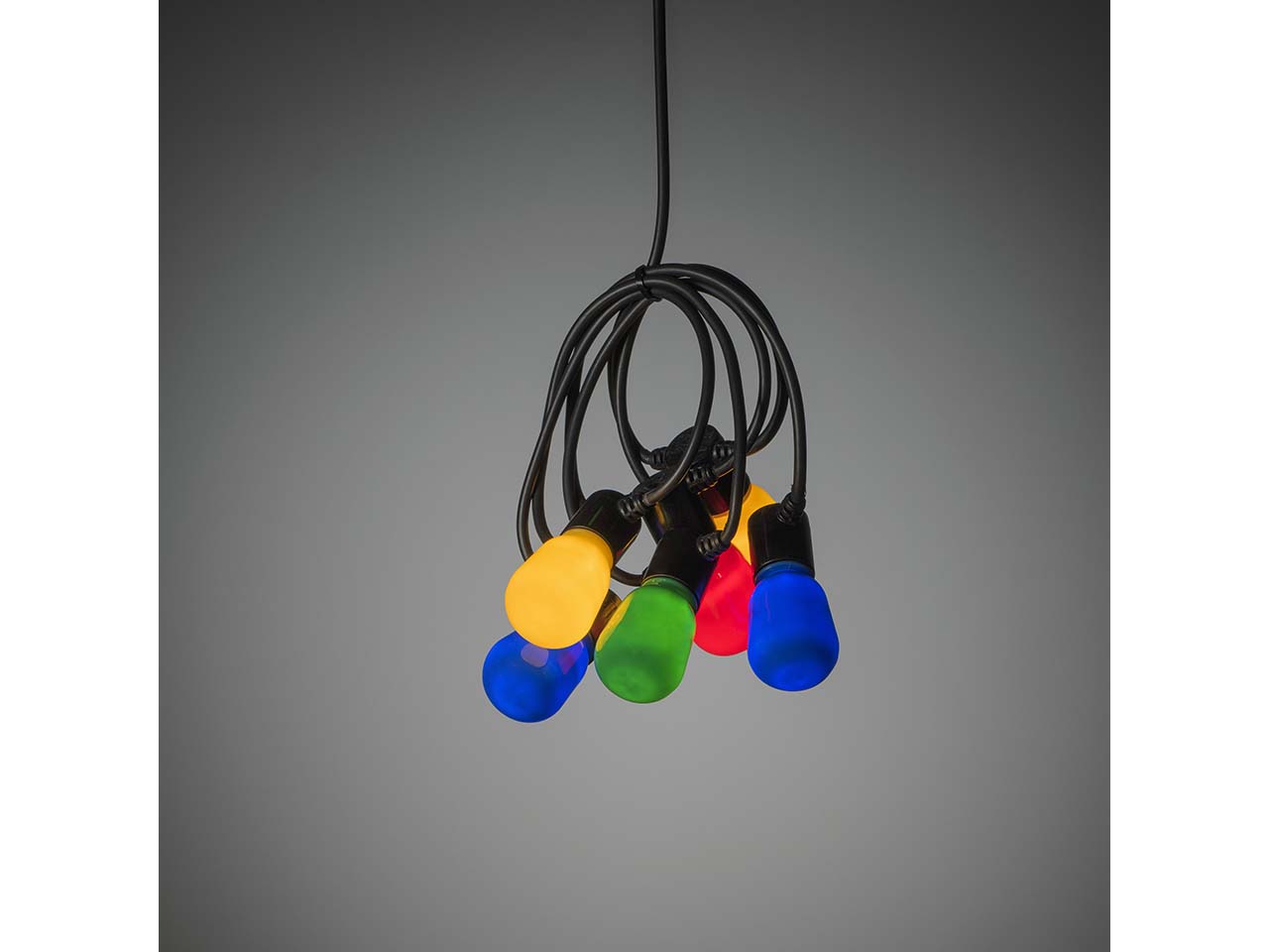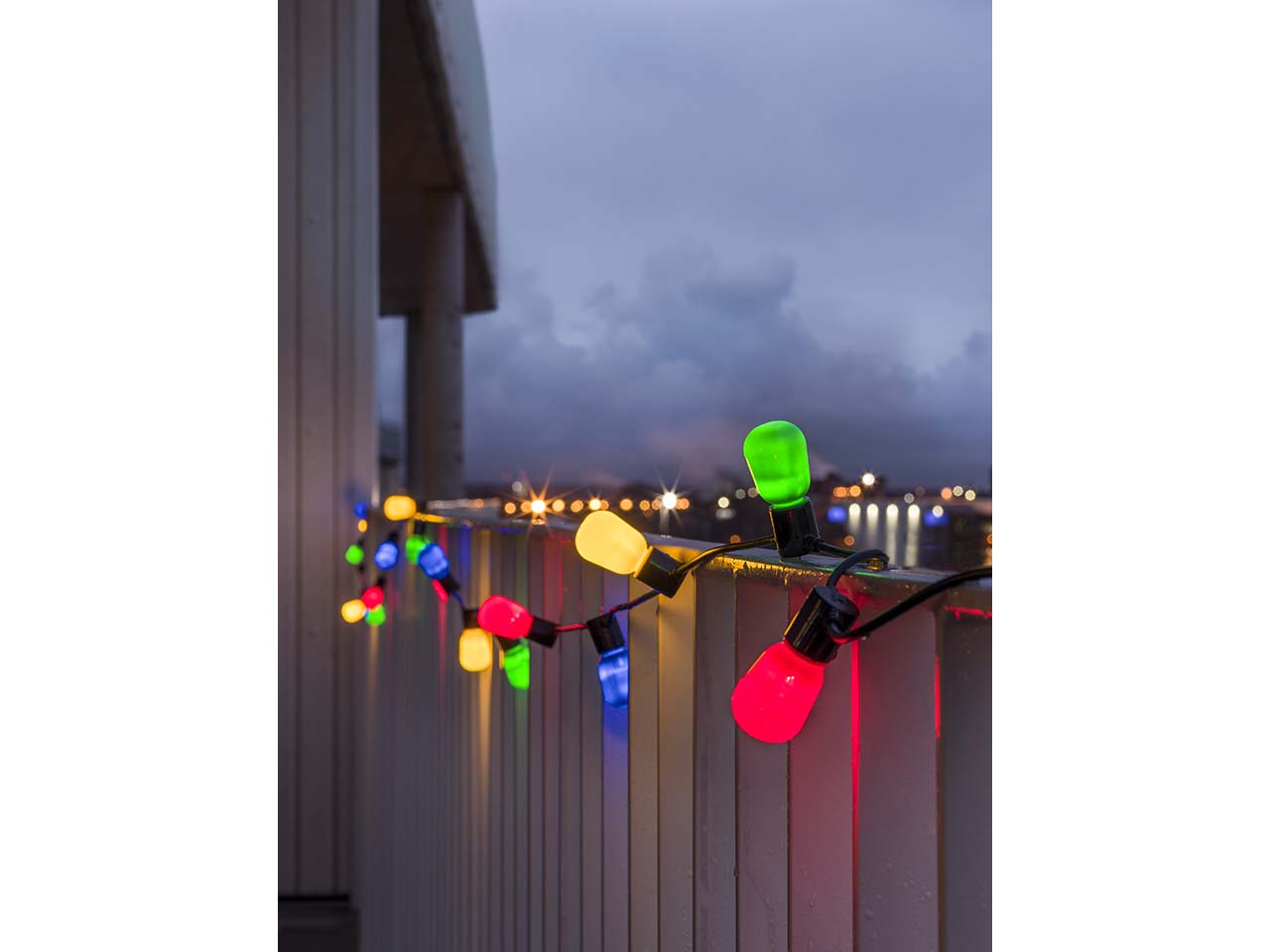 - Mit 10 bunten Birnen und warmweißem Licht