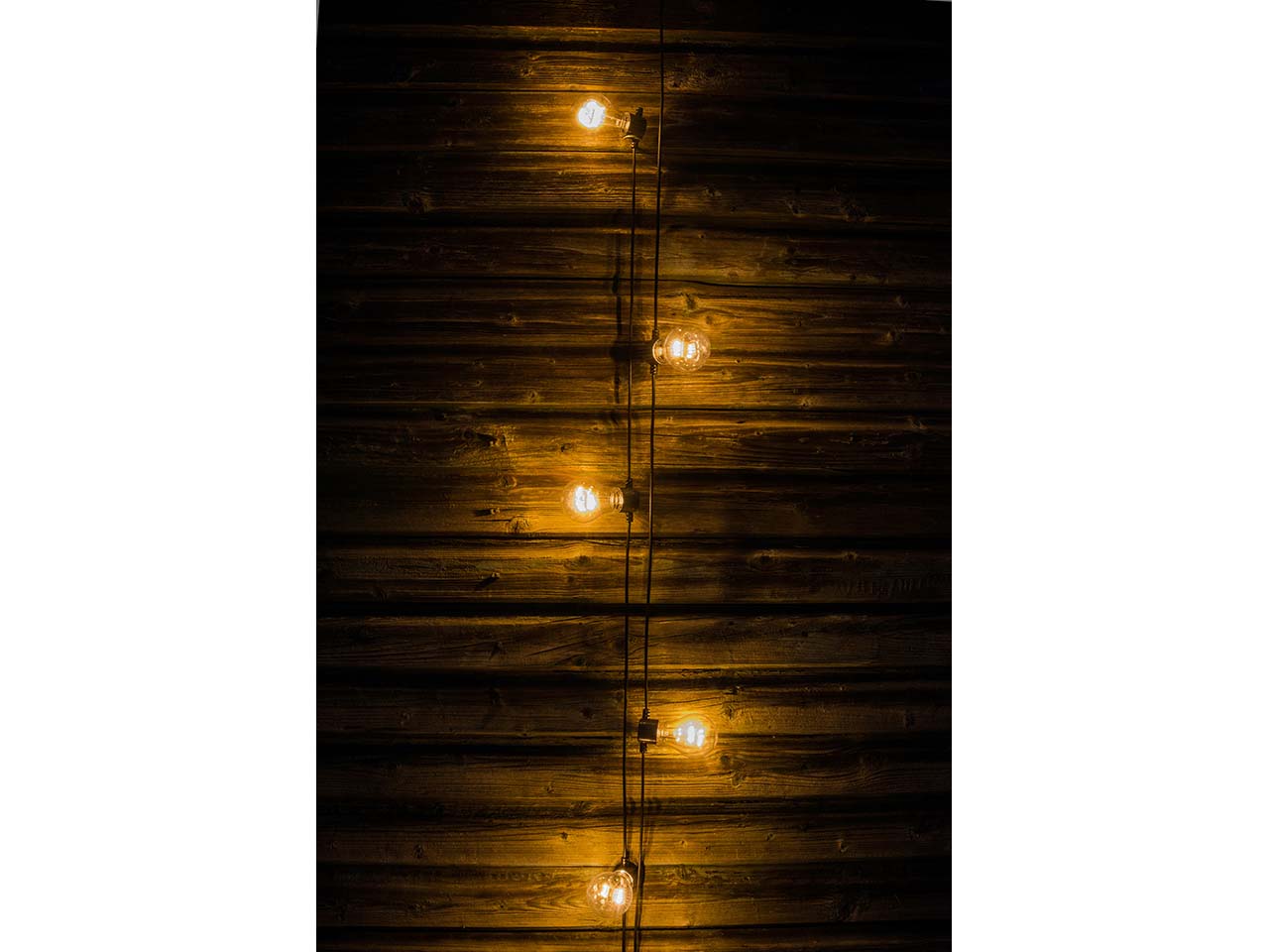 Diese LED-Lichterkette darf bei keinem Event fehlen! Sie ist bei Gartenpartys, beim Grillen mit Freund:innen oder anderen Festlichkeiten eine einzigartige Dekoration mit Wow-Effekt. Mit ihren bunten oder klaren Birnen sorgt die Biergartenkette für warmweißes, stimmungsvolles Licht im Innen- oder Außenbereich. Sie kann auf der Terrasse, im Garten oder auf dem Balkon angebracht werden. Die LED-Lichterkette ist batteriebetrieben, sodass sie unabhängig von Steckdosen betrieben werden kann. Die Timerfunktion ermöglicht ein automatisches Ausschalten nach sechs Stunden.