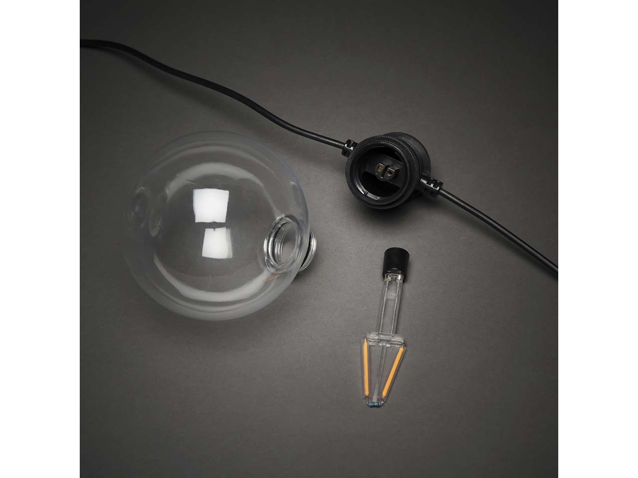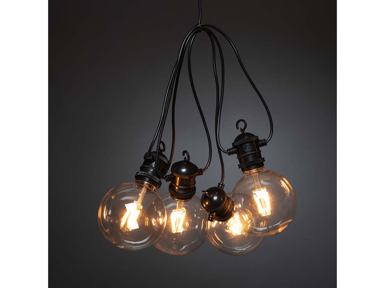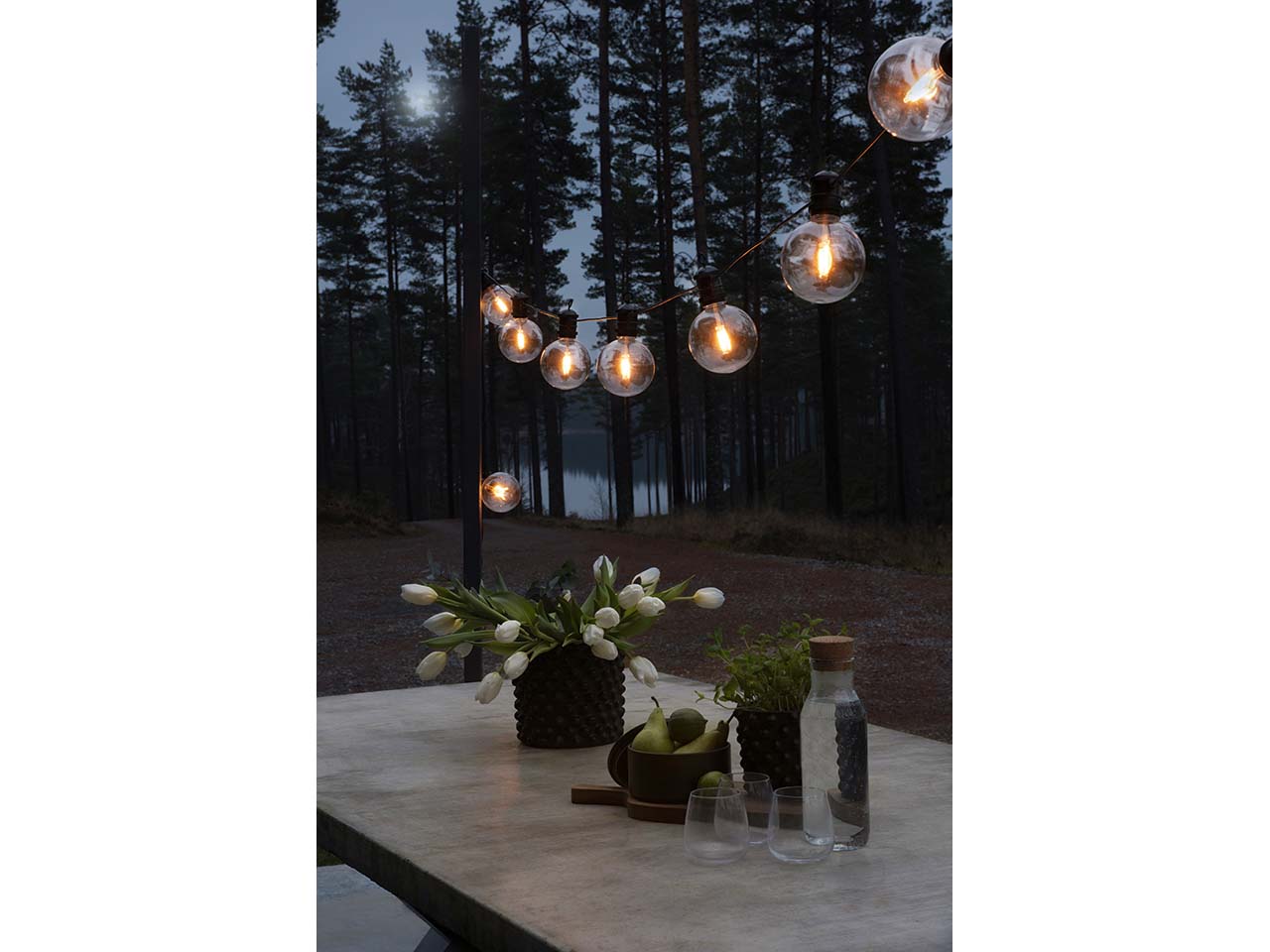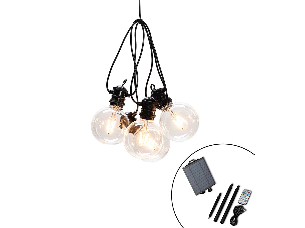 Die Party kann steigen! Die LED-Lichterkette sorgt im Partykeller, im Garten, auf dem Balkon, der Terrasse oder im Wohnzimmer für gute Laune. Die klaren Birnen mit bernsteinfarbenen Dioden verströmen ein besonders angenehmes, warmes Licht. Das Beste: Sie kann ganz unabhängig von Steckdosen und Verlängerungskabeln benutzt werden. Sie lädt per Solarpanel oder alternativ per USB-Kabel auf. So ist sie immer zur Stelle, wenn sie benötigt wird. Dank Fernbedienung lässt sich die Lichterkette kinderleicht bedienen. Sie ist dimmbar und verfügt über einen Timer.