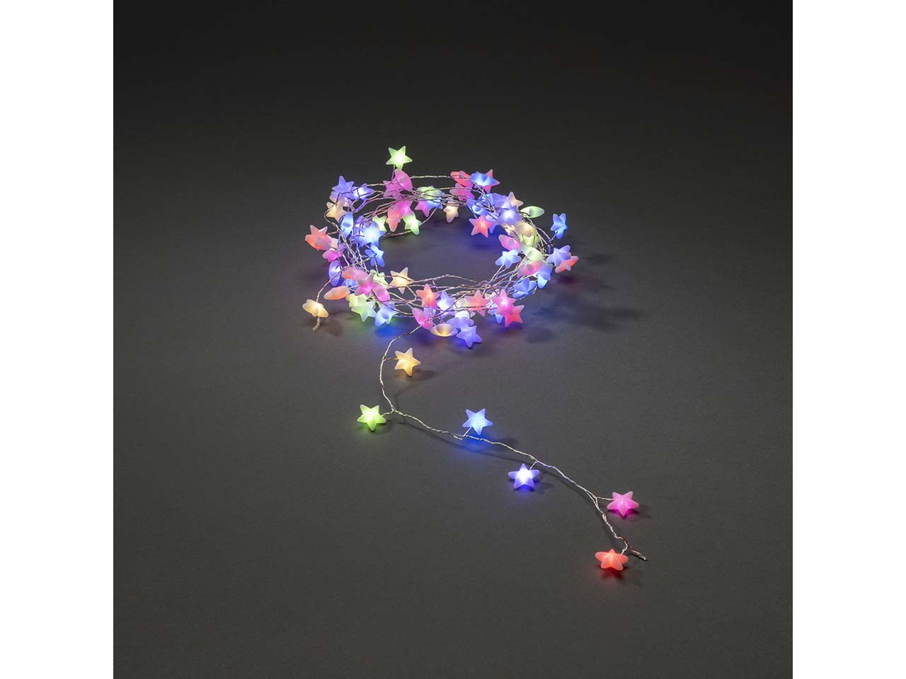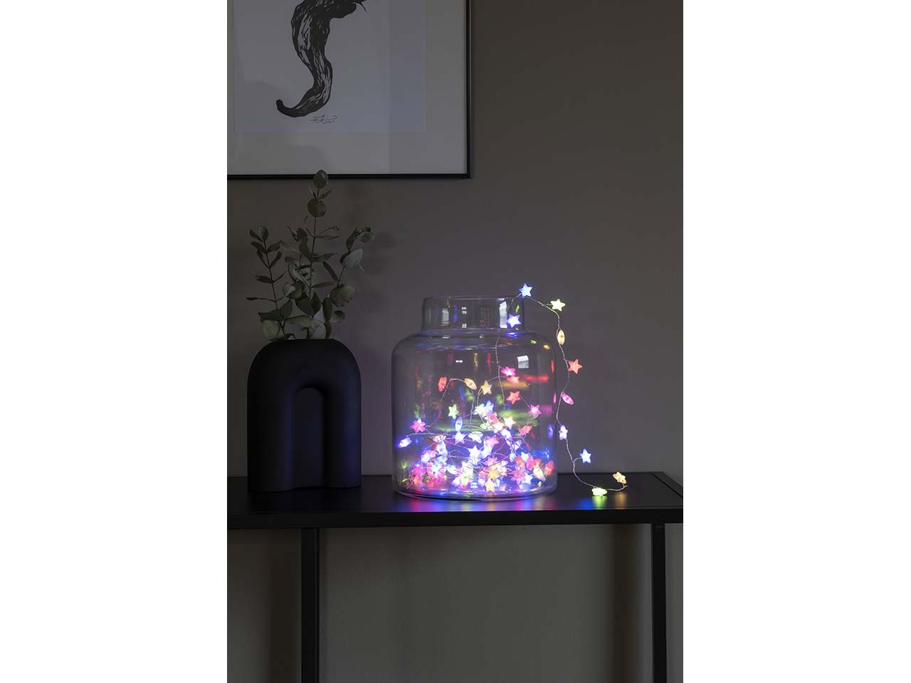 Wie schön diese Sterne glitzern! Die LED-Lichterkette mit filigranem Silberdraht ist ein echtes Highlight mit magischer Ausstrahlung. Sie eignet sich für Glasgefäße, auf dem festlich gedeckten Tisch oder in einem Gesteck. Sie zieht immer und überall alle Blicke auf sich. Das Licht sorgt für eine stimmungsvolle Atmosphäre im Innenbereich. Die Zuleitung mit fünf Metern ermöglicht eine flexible Anbringung. Erhältlich in Weiß oder bunt.