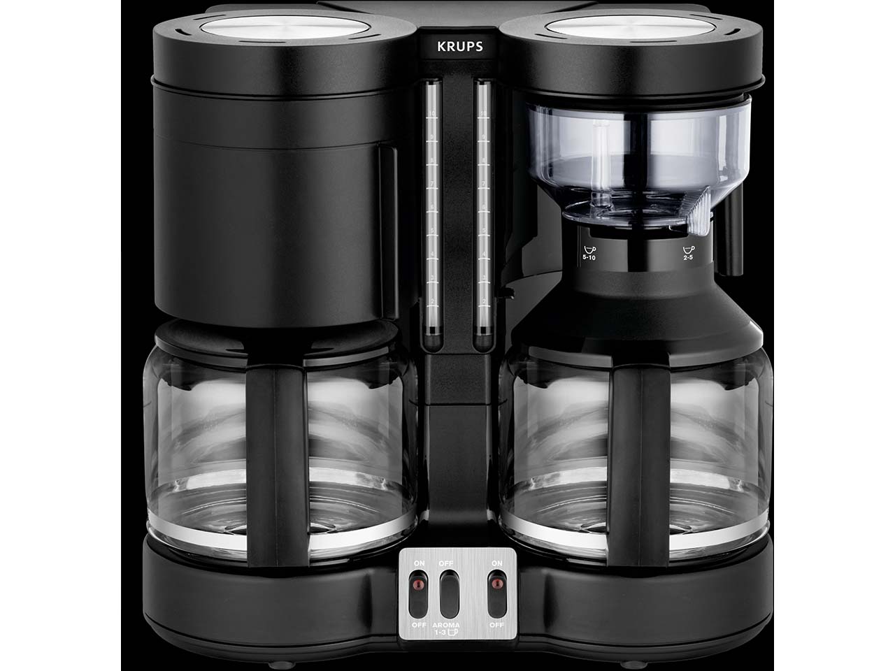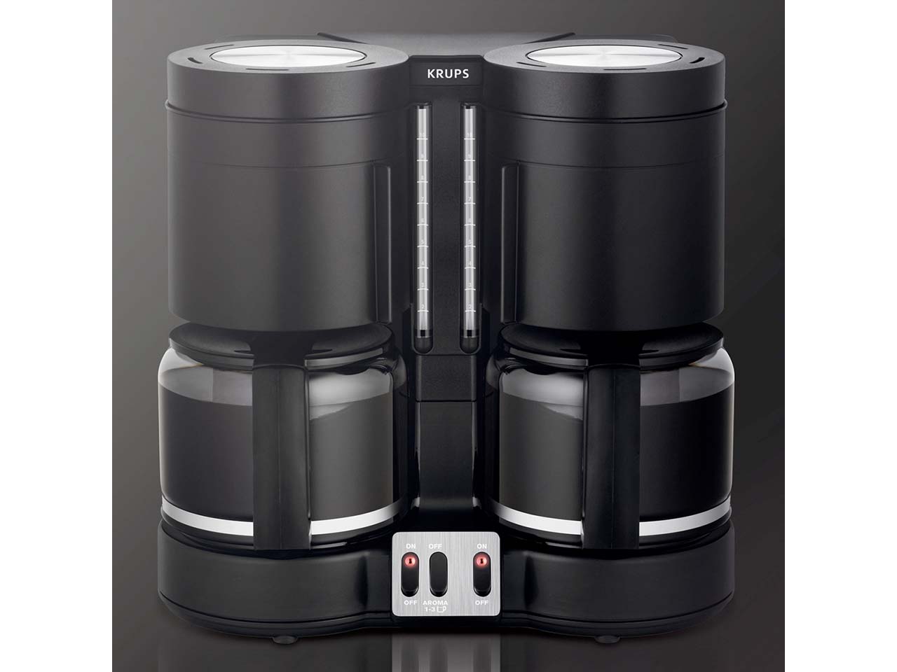 Filterkaffeemaschine mit zwei Kannen und unabhängigen Brühsystemen