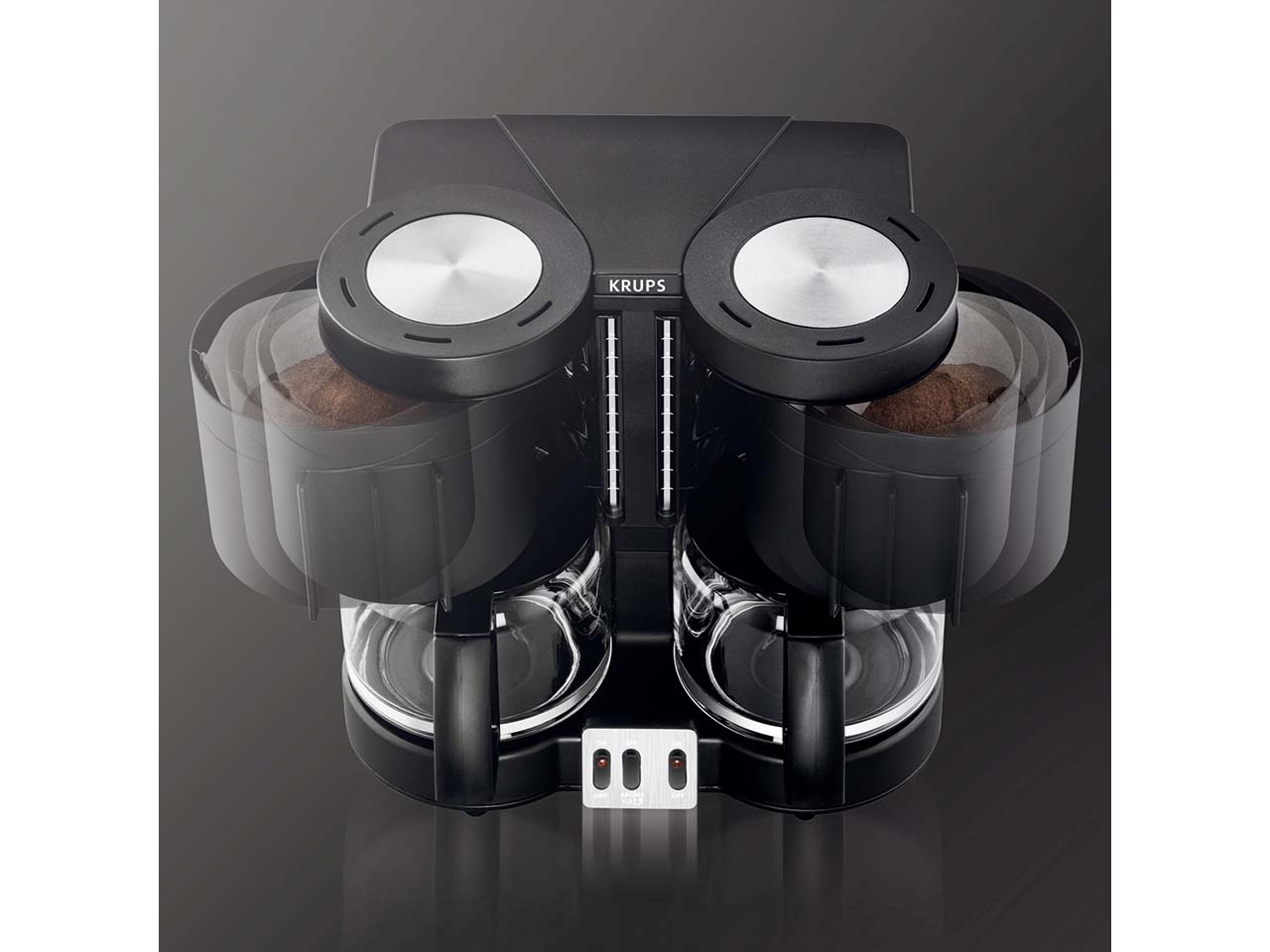 - Filterkaffeemaschine mit zwei Kannen und unabhängigen Brühsystemen