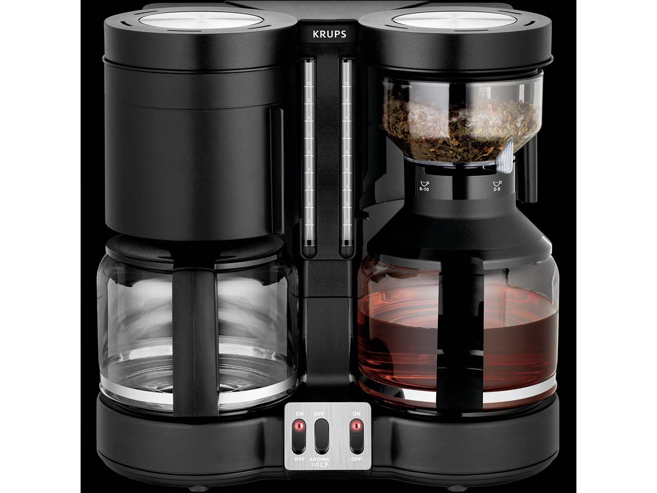 Die perfekte Lösung für Büros, Familienfeiern und Co.! Diese Filterkaffeemaschine von KRUPS hat zwei Kannen und zwei unabhängige Brühsysteme. So lassen sich gleichzeitig zwei Kannen Kaffee kochen – und jeweils in unterschiedlichen Stärken. In der Lieferung ist zudem Zubehör für Tee enthalten, sodass man sogar weitere Heißgetränke zubereiten kann. Jeder Filterhalter hat ein leicht zugängliches System. Über die separaten Wasserstandsanzeigen ist immer zu sehen, ob noch genug Wasser im Tank ist. Die Kaffeemaschine ist über den Ein- und Ausschalter leicht zu bedienen. Eine weitere Kontrollleuchte gibt Auskunft über die Aroma-Auswahl.