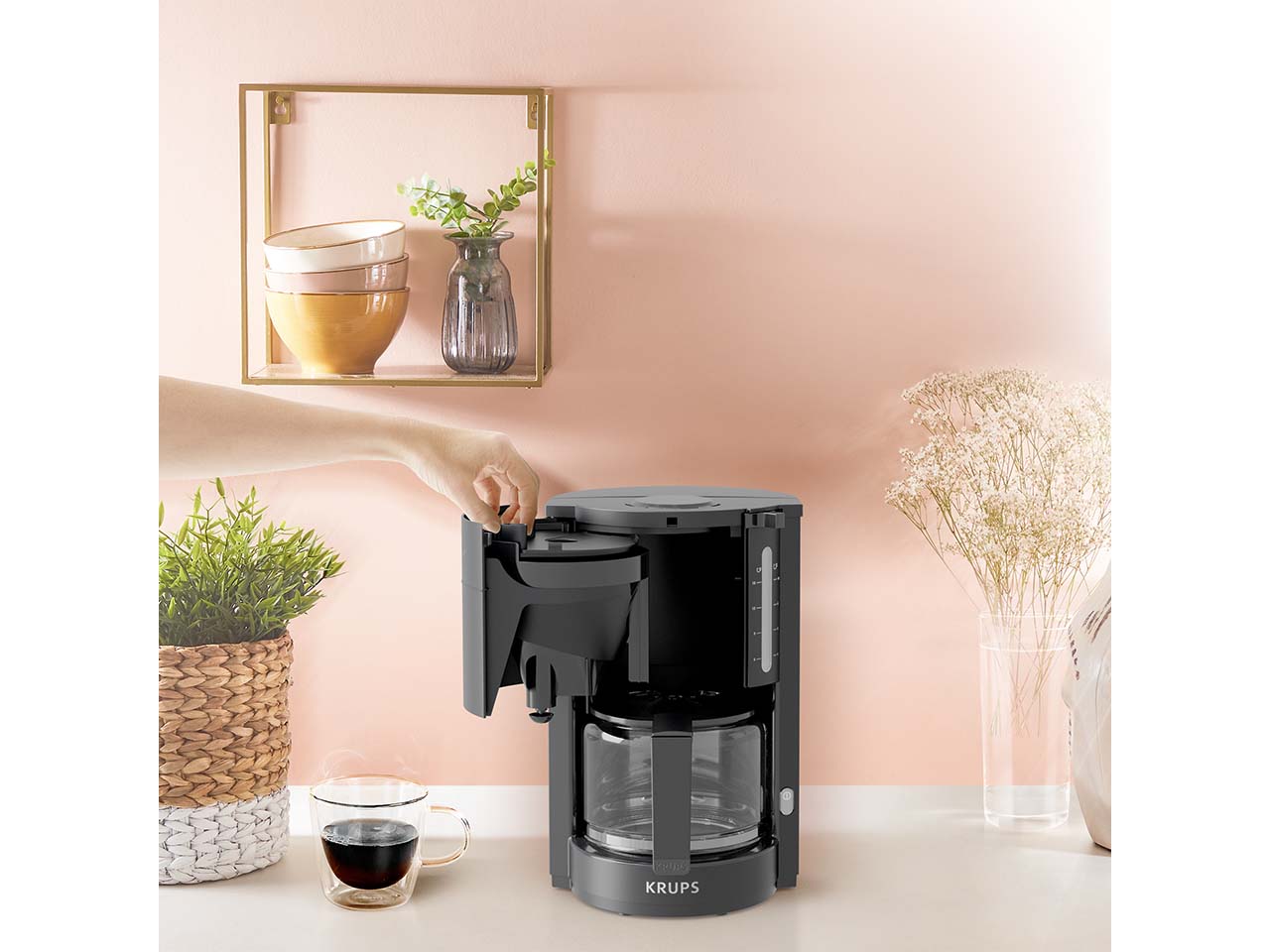 Diese Filterkaffeemaschine von KRUPS sorgt morgens und mittags für frischen Kaffee und damit für neue Energie. Praktische Funktionen wie der leicht zugängliche Filtereinsatz oder die automatische Öffnung machen das Kaffeebrühen mit der Maschine komfortabel. Der Wasserstandsanzeiger ist gut sichtbar. Die Kaffeemaschine verfügt über eine Warmhaltefunktion mit automatischer Abschaltfunktion 30 Minuten nach dem Brühvorgang.