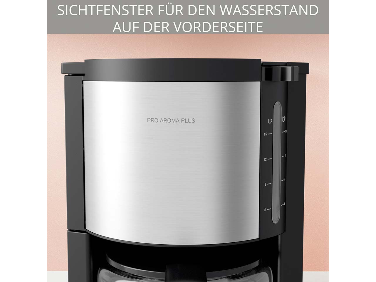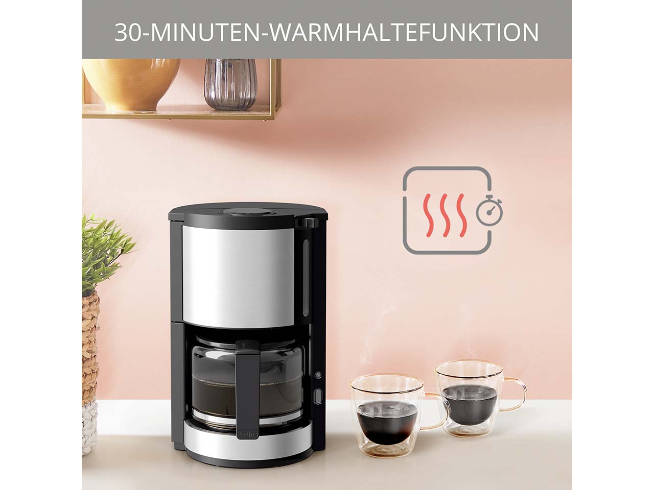 - Mit Warmhaltefunktion und automatischer Abschaltung 30 Minuten nach Brühvorgang