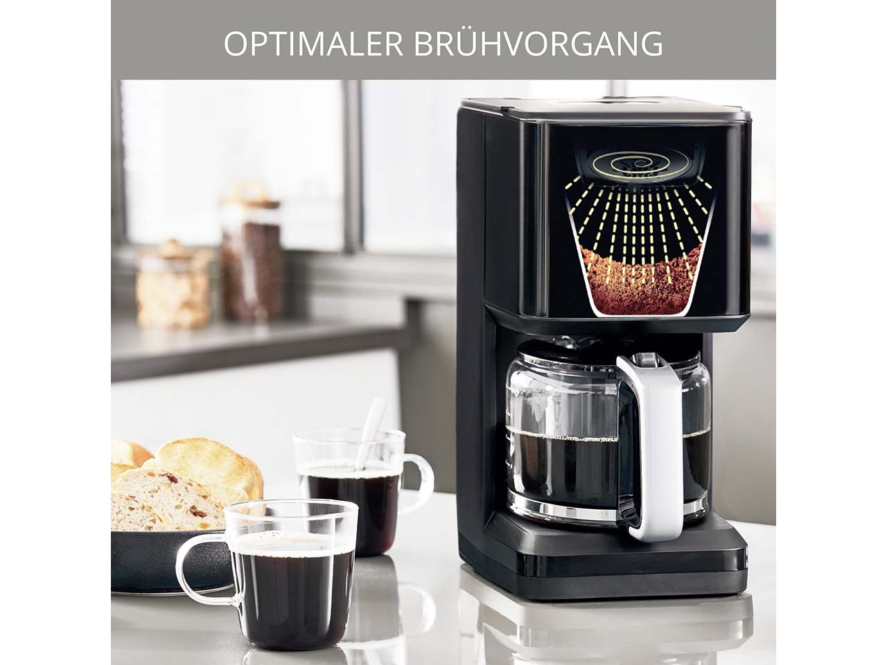 - Elegante, moderne Filterkaffeemaschine mit einfacher Bedienung