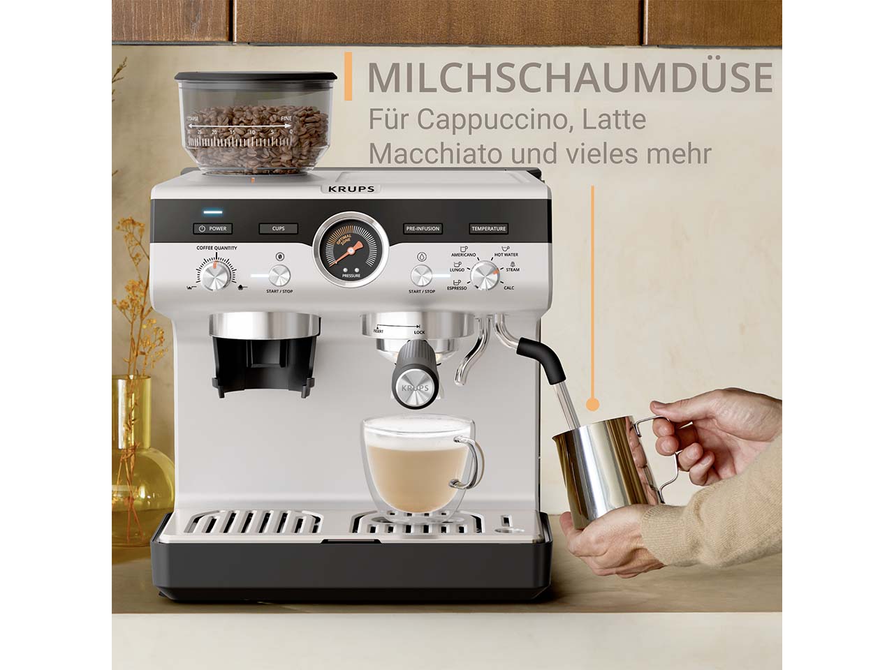 - Mit professioneller Dampfdüse für Latte-Art