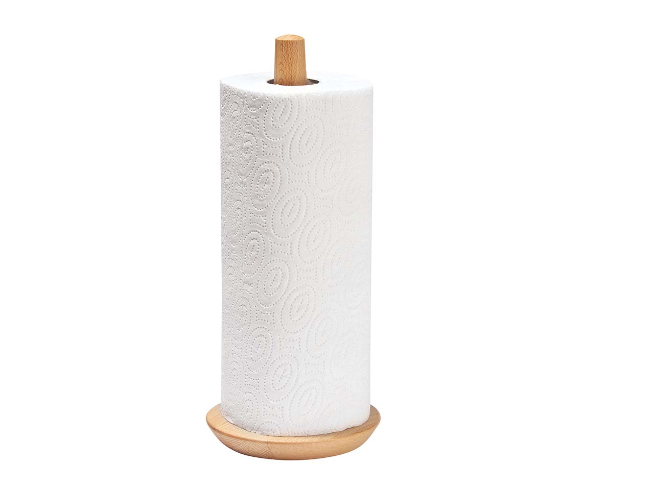 Küchenrollenhalter aus Holz - formschön, standfest und aus massiver, FSC-zertifizierter Buche. Für jede handelsübliche Küchenrolle geeignet. Höhe ca. 32 cm, Standfuß ca. 13,5 cm.
