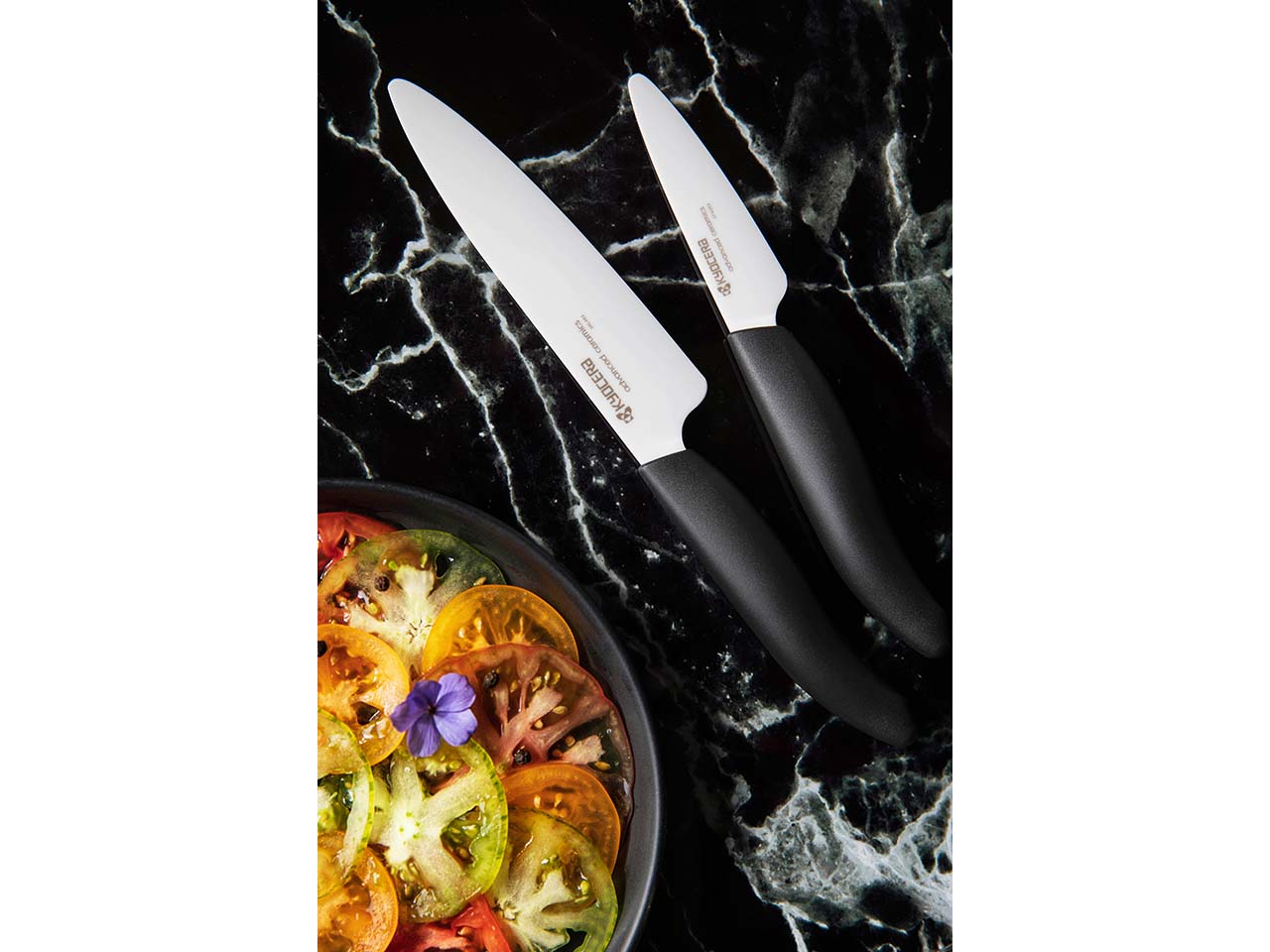Das qualitativ hochwertige, extrem scharfe Schälmesser verfügt über eine Hochleistungskeramikklinge, die von Hand geschliffen ist. Durch die besondere Härte erhält das Messer eine hohe Bruchfestigkeit, wodurch es sehr langlebig ist. Keramikmesser übertragen keine Metallionen.