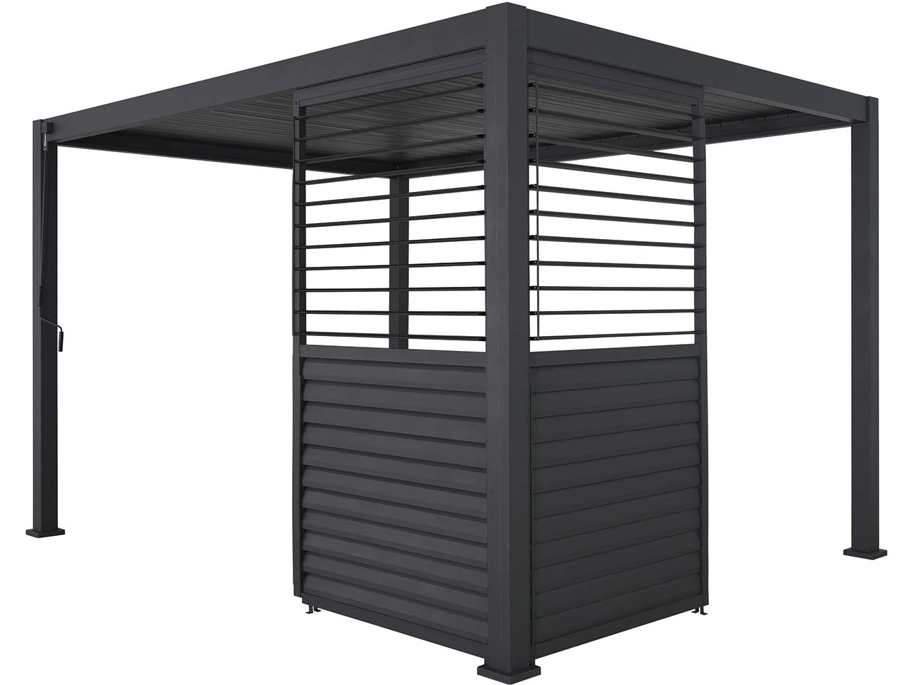 Diese Lamellenwand für die Terrassenüberdachung „Cadiz“ ist eine praktische Ergänzung für den Außenbereich. Sie ist aus stabilem, langlebigem Aluminium gefertigt. Die Lamellen der Rollladen-Wand lassen sich verstellen, sodass eine individuelle Regulierung des Lichteinfalls und des Sichtschutzes möglich ist. Das Zubehör hat eine elegante Optik.