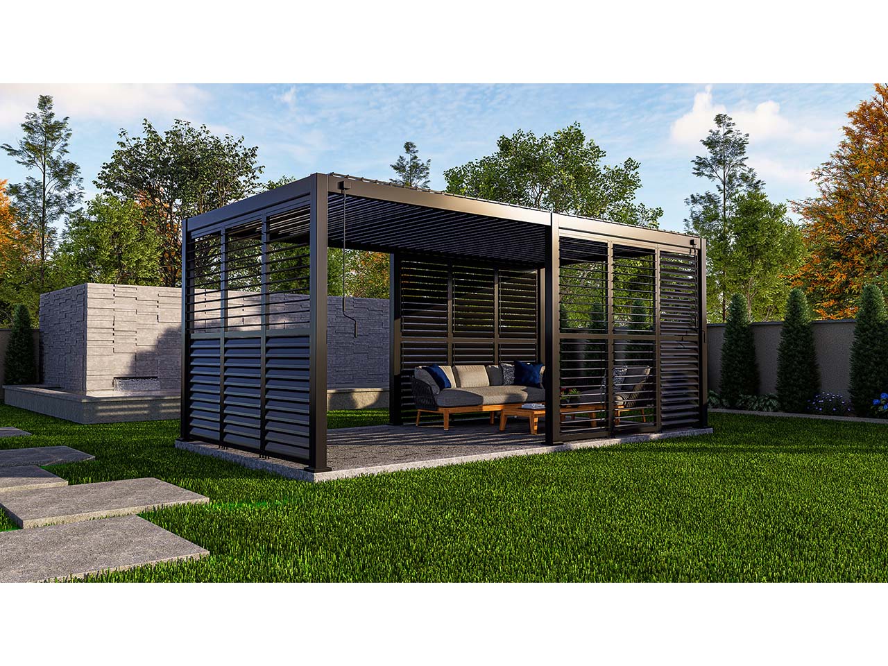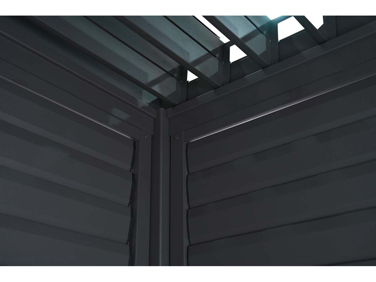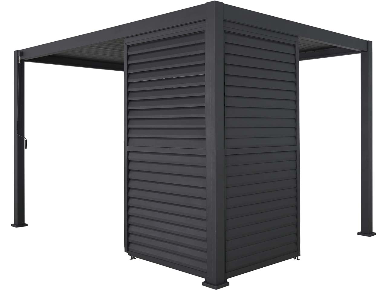 Flexibilität und Funktionalität vereint: Die Lamellenwand kann ganz individuell eingestellt werden! Die Rollladen-Wand aus stabilem, langlebigem Aluminium ermöglicht es, die Lamellen zu verstellen. Dadurch lassen sich Lichteinfall und Sichtschutz nach Bedarf regulieren. Die Wand für die Terrassenüberdachung „Cadiz“ bringt eine subtile Eleganz mit, die den Außenbereich aufwertet.