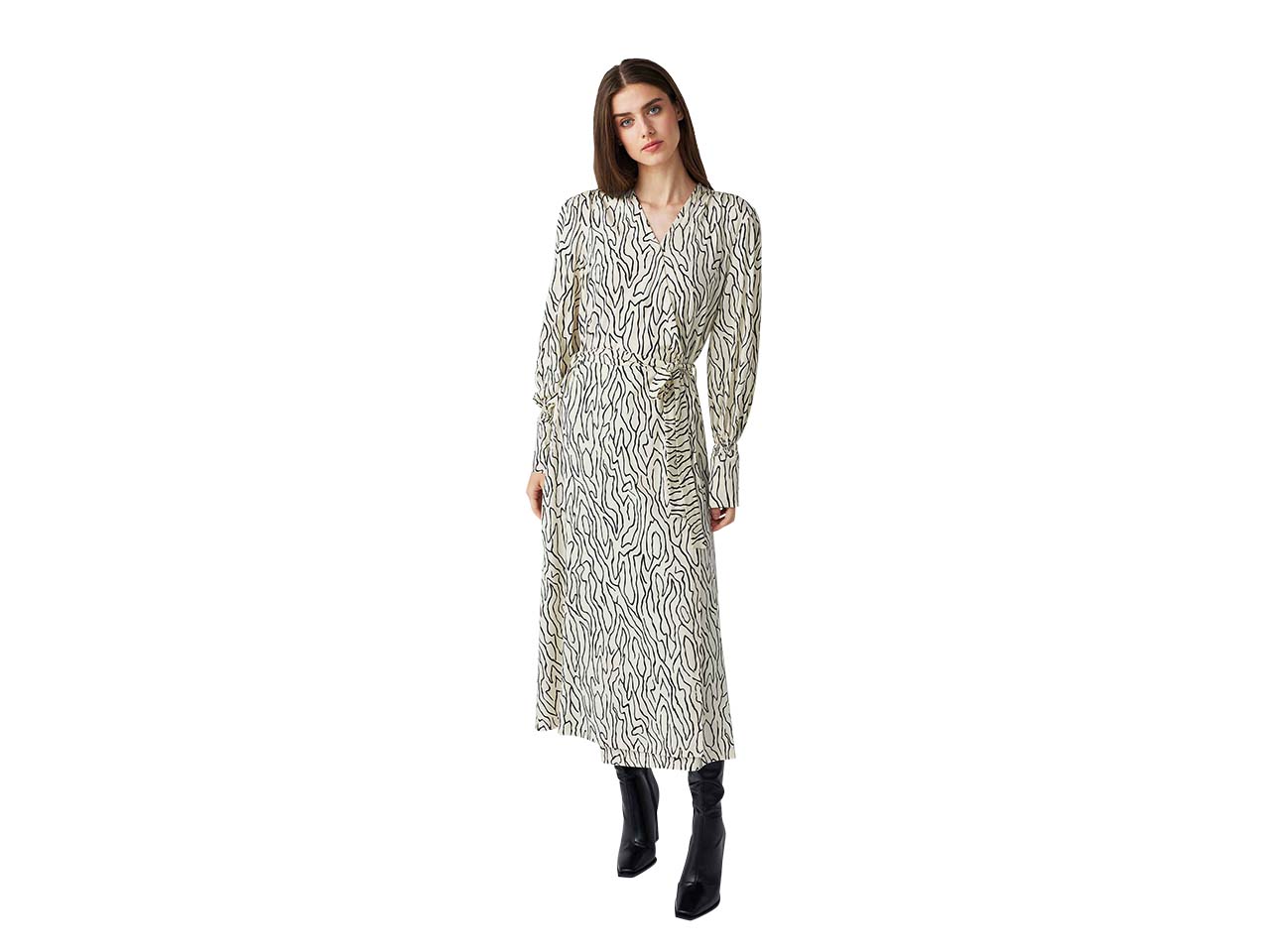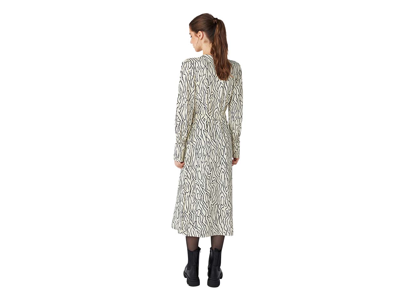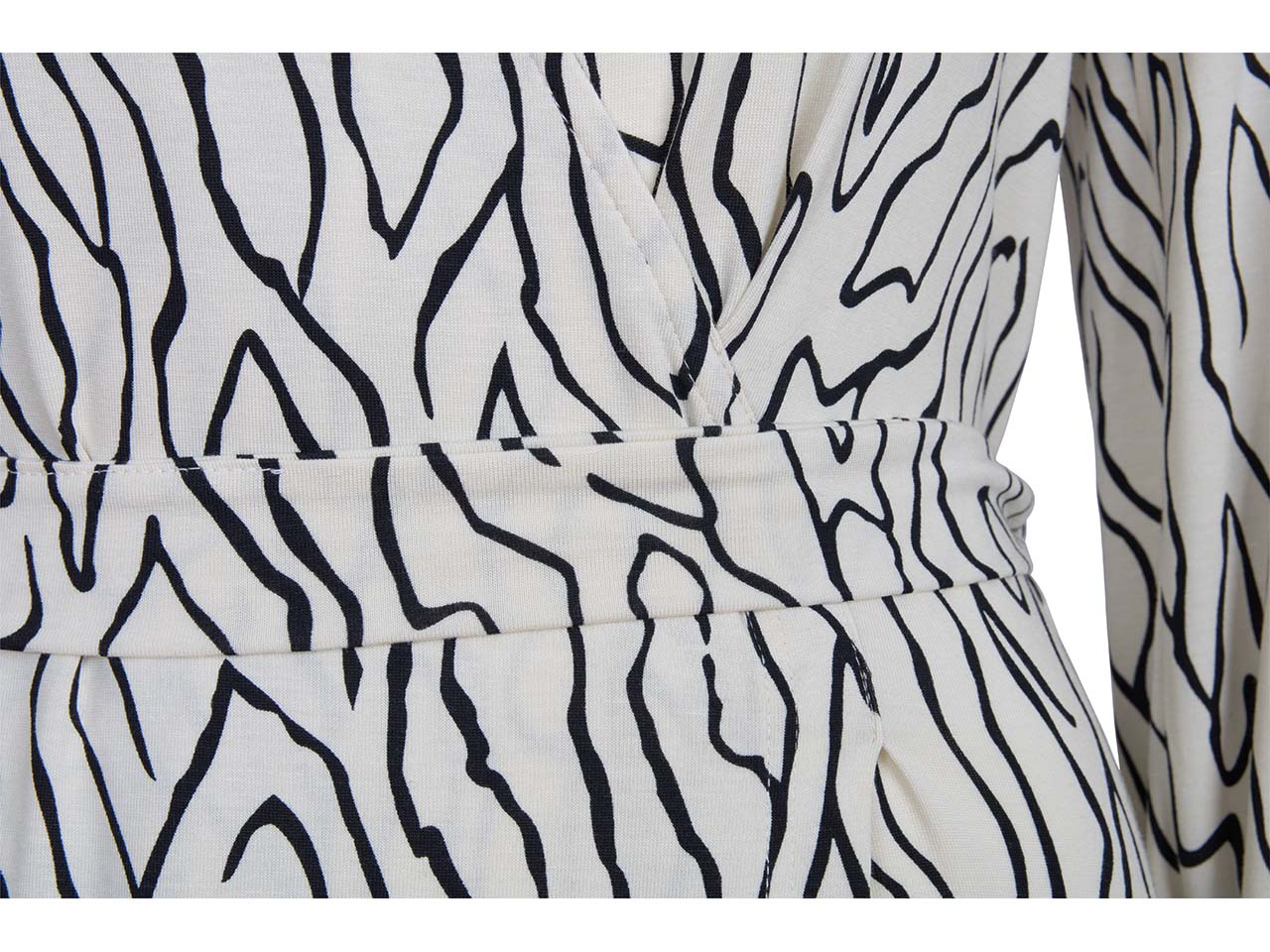 Das Kleid besteht zum Großteil aus Lyocell, ein seidenartiges und naturnahes Material, das antibakteriell, atmungsaktiv, weich und temperaturausgleichend ist. Es ist sehr widerstandsfähig, sodass Kleidung eine langlebige Qualität erhält. Das Material eignet sich für sensible Haut. Zu 30 % besteht das Textil aus strapazierfähiger Bio-Baumwolle. Zu den positiven Eigenschaften von Baumwolle gehört zudem, dass sie atmungsaktiv ist, sich angenehm auf der Haut anfühlt und Schweißbildung verringert. Aufgrund des geringen Anteils Elasthan passt sich das Oberteil besonders gut an die Körperform an.