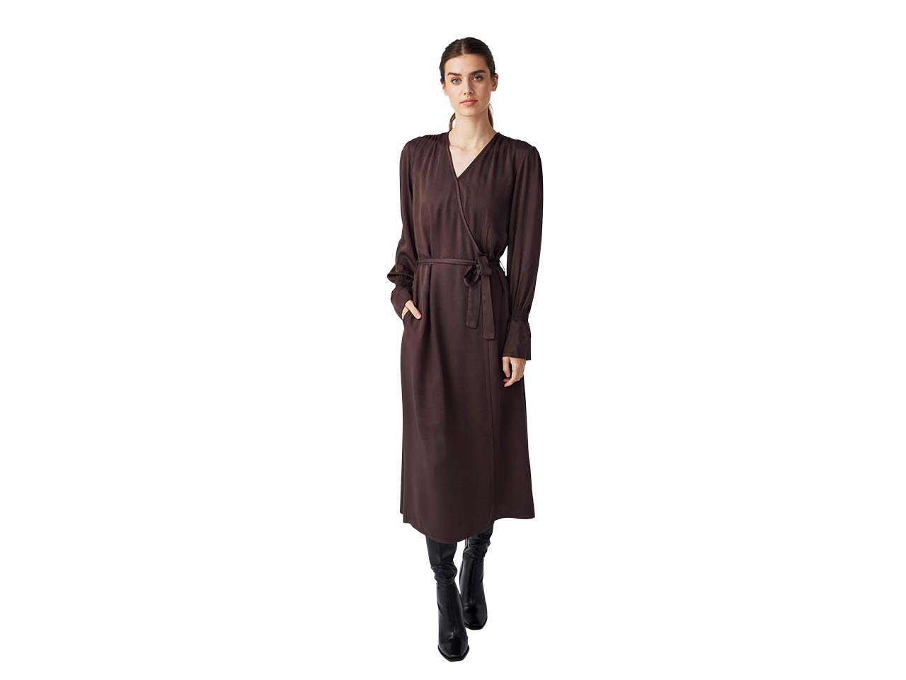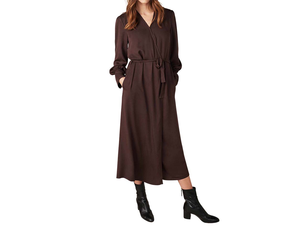 Eleganz pur! Sanft fließender Stoff zeichnet dieses wunderschöne Kleid aus. Der Materialmix aus Tencel™, Baumwolle und einem kleinen Anteil Elasthan fühlt sich fantastisch auf der Haut an. Passend dazu wirkt das Kleidungsstück in lockerer Passform edel. Der großzügige V-Ausschnitt und die gefassten Bündchen am Handgelenk tragen zu der eleganten Note des Maxikleids bei.