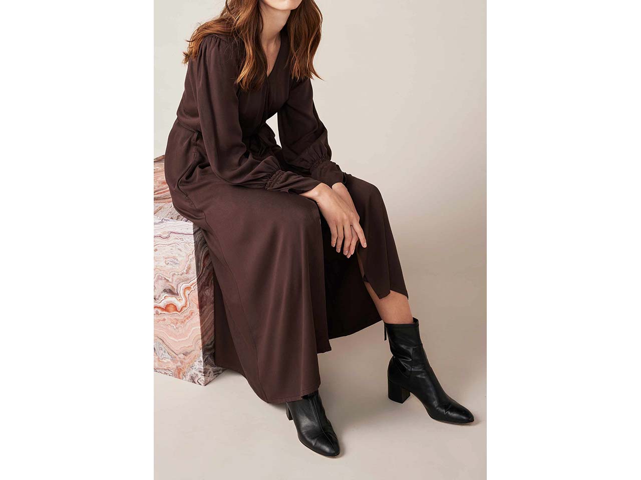 - Maxikleid mit V-Ausschnitt und lockerer Passform