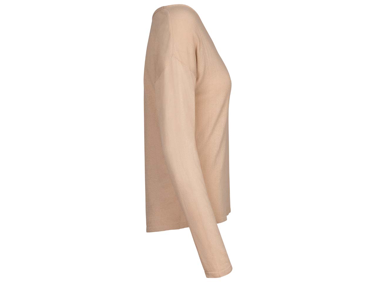 Der Sommer in Deutschland ist zwar nicht immer sonnig, aber keine Sorge: Mit diesem leichten Feinstrickpullover von LANA aus 100 % GOTS-zertifizierter Bio-Baumwolle kann sich Frau auch an kühleren Tagen warm halten. Neben der angenehmen und atmungsaktiven Qualität punktet der Pullover mit seinem weiten V-Ausschnitt, der lockeren Passform und den modernen, überschnittenen Schultern. Ob er nun in Hose oder Rock reingesteckt, oder einfach bei Bedarf übergeworfen wird, bleibt dem Geschmack der Trägerin überlassen. Und kleiner Tipp: Auch lässig über die Schultern getragen kann der Pullover zum tollen Fashion-Accessoire werden.