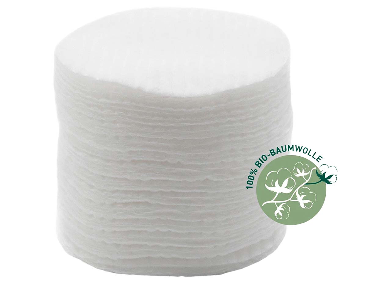 - Runde Pads aus zertifizierter Bio-Baumwolle