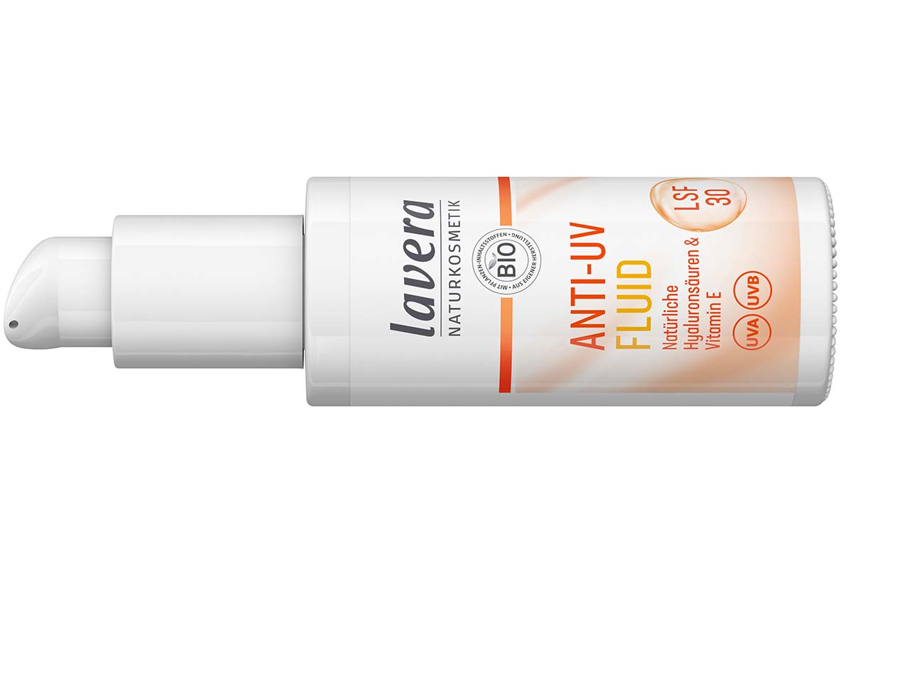 Das lavera Anti-UV-Fluid schützt die Haut sofort und effektiv vor UVA- und UVB-Strahlung. Die NATRUE-zertifizierte Pflege enthält natürliche Hyaluronsäure und antioxidatives Vitamin E. Die leichte Textur zieht schnell ein, klebt und fettet nicht. Der mineralische Sonnenschutz kann sogar als Make-up-Grundlage eingesetzt werden! Das Fluid macht die Haut geschmeidig und beugt den ersten Anzeichen sonnenbedingter Hautalterung wie Pigmentflecken und Fältchen vor. Das Anti-UV-Fluid mit LSF 15 eignet sich für alle Hauttypen.