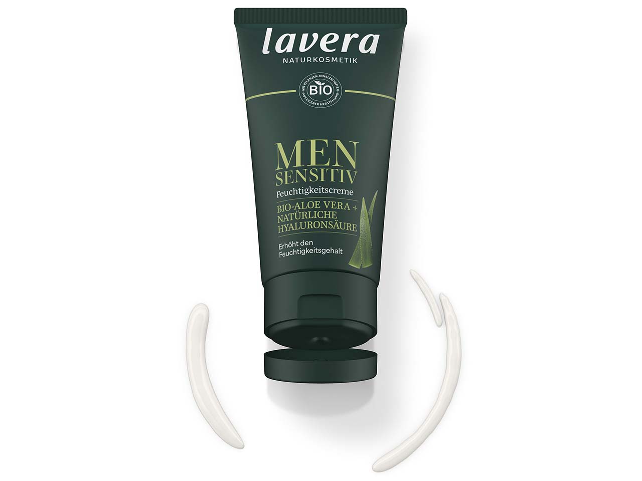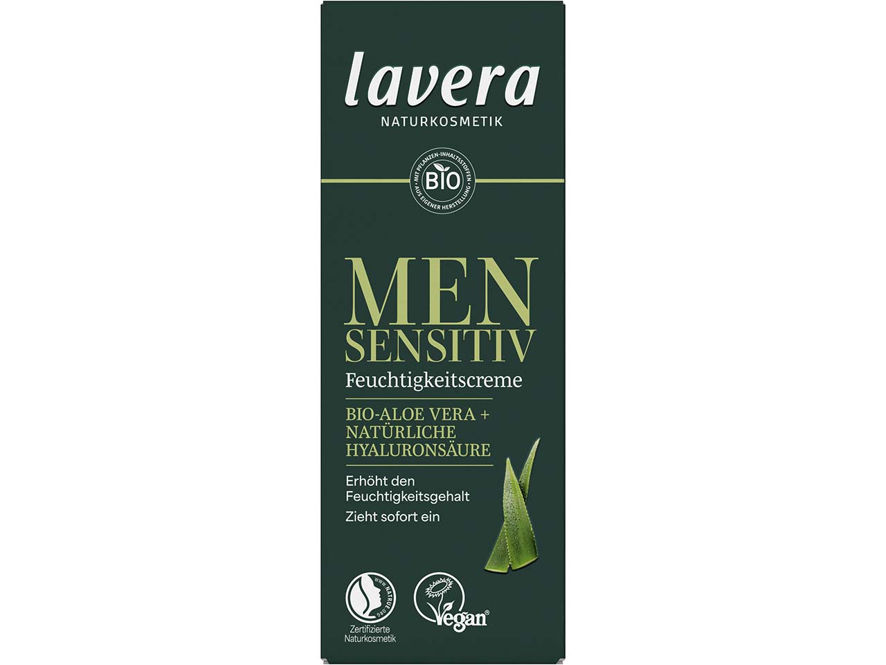 Die NATRUE-zertifizierte Feuchtigkeitscreme von lavera versorgt die Haut intensiv mit Feuchtigkeit und stärkt ihre Widerstandskraft. Dank leichter Textur zieht die Creme schnell ein und Bio-Aloe Vera und natürliche Hyaluronsäure beruhigen die Haut. Die Creme ist frei von künstlichen Farb- und Konservierungsstoffen. Sie lindert Spannungsgefühle und Juckreiz. Auch ideal für direkt nach der Rasur. Inhalt 50 ml.