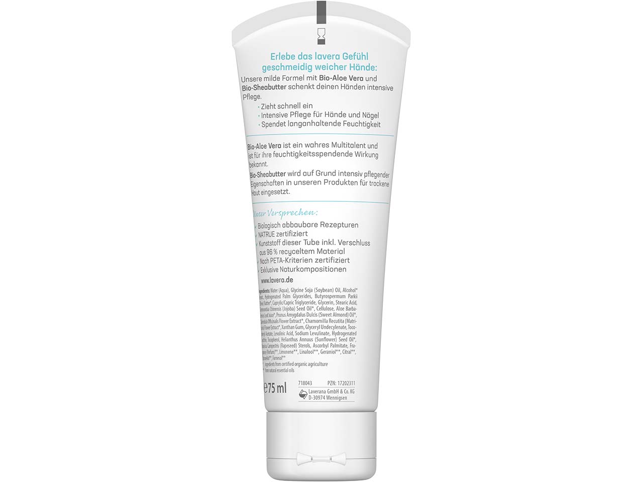 Für die Tube inkl. Verschluss wird zu 95 % recyceltes Material eingesetzt. Durch den Einsatz von Recyclingmaterial wird das Abfallaufkommen reduziert und wertvolle, fossile Ressourcen geschont.