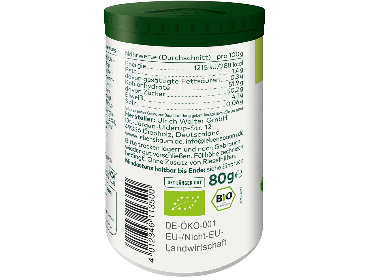 | Hersteller: | Lebensbaum Ulrich Walter GmbH, Dr.-Jürgen-Ulderup-Str. 12, 49356 Diepholz, https://www.lebensbaum.com/c/kontakt |
