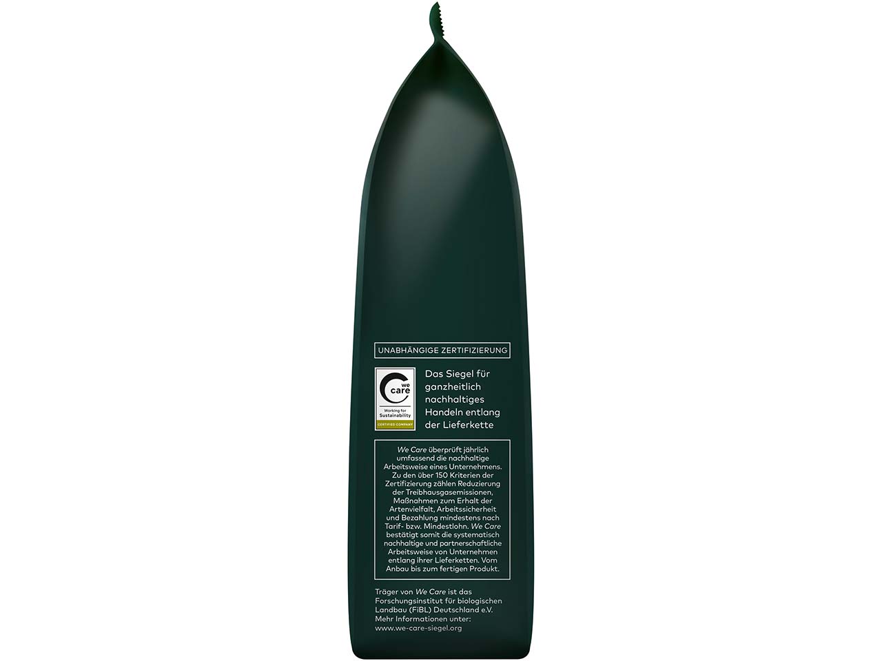 An den immergrünen Hängen des Tajumulco, dem höchsten Vulkan Zentralamerikas, herrscht auf 1.500 Meter Höhe ein mildes Klima mit viel Regen – perfekte Voraussetzungen, damit Kaffeekirschen langsam heranreifen. Unter dem Schutz hoher Bäume nehmen sie sich die Zeit, die sie brauchen. Sind sie rot, erfolgt die Ernte von Hand. Geröstet wird der Kaffee aus kontrolliert biologischem Anbau in der hauseigenen RAPUNZEL Rösterei. Hier werden die feinen Aromen sorgfältig herausgearbeitet. Es entsteht ein fruchtig-süßer Bio-Kaffee mit Noten von Orange. Die ganzen Bohnen eignen sich für die Zubereitung in der French Press oder dem Vollautomaten.