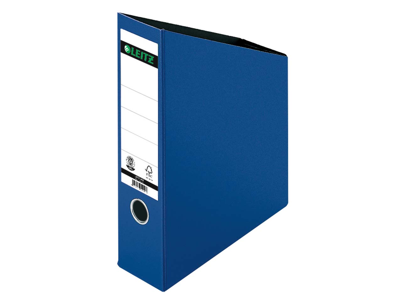 Stehsammler aus stabiler Recyclinghartpappe. Mit dem Blauen Engel ausgezeichnet. Mit eingefasstem Griffloch und Rückenschild zur Beschriftung. Für Format DIN A4. B 8 x T 24,5 x H 32 cm. Farbe blau.