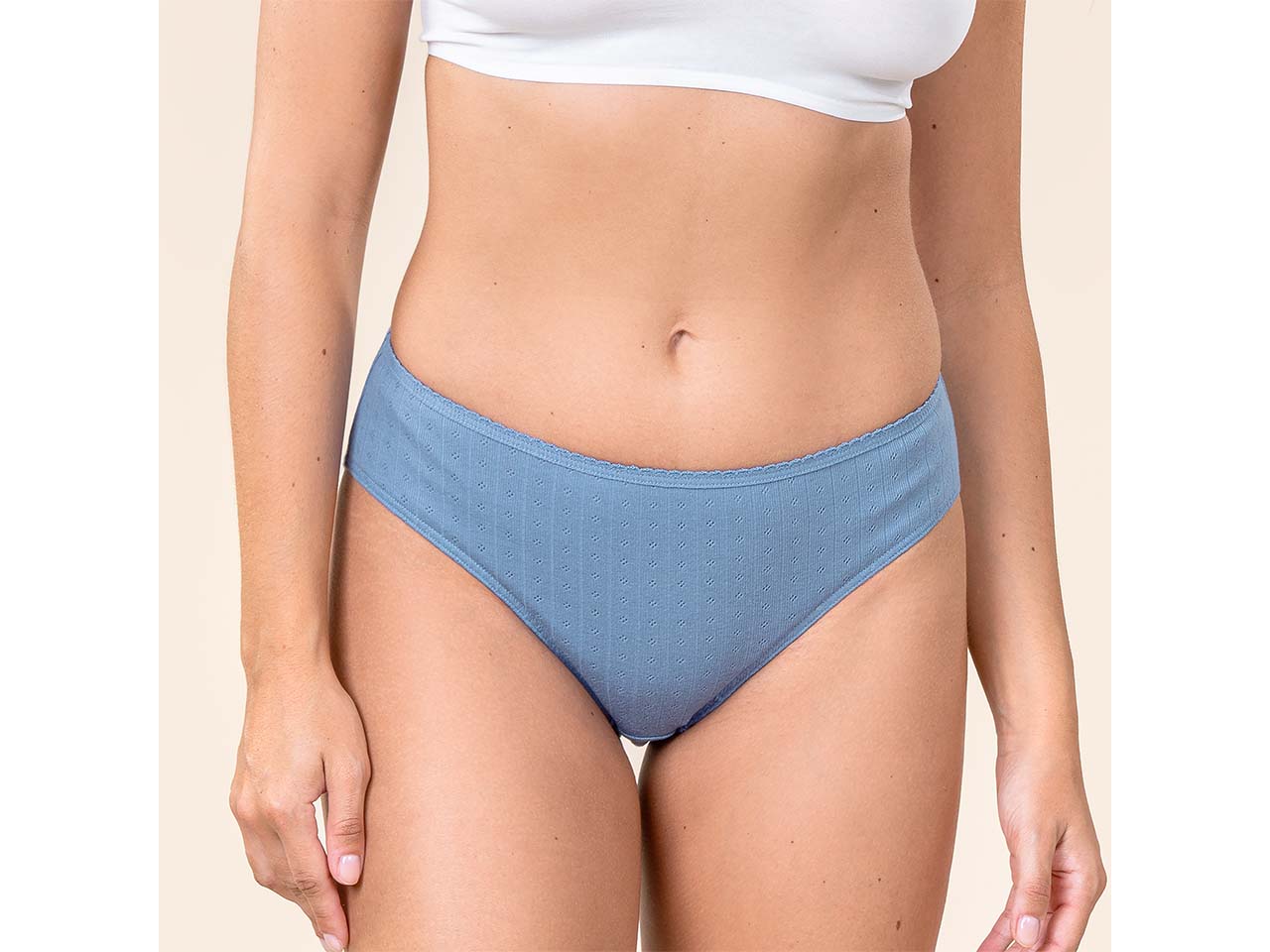 Weiche Qualität und klassische Optik: Die 2 Damen-Slips von Living Crafts überzeugen mit ihrer hochwertigen Qualität und dem hohen Tragekomfort. Dieser entsteht durch die Herstellung aus GOTS-zertifizierter Bio-Baumwolle. Der Ajour-Strick sorgt dafür, dass viel Luft an die Haut kommt, was die Unterwäsche perfekt für Frühjahr und Sommer macht. Elastische Abschlüsse am Bund und die delikate Häkel-Bordüre am Bund runden die Slips ab. 1 Pack = 2 Stk.