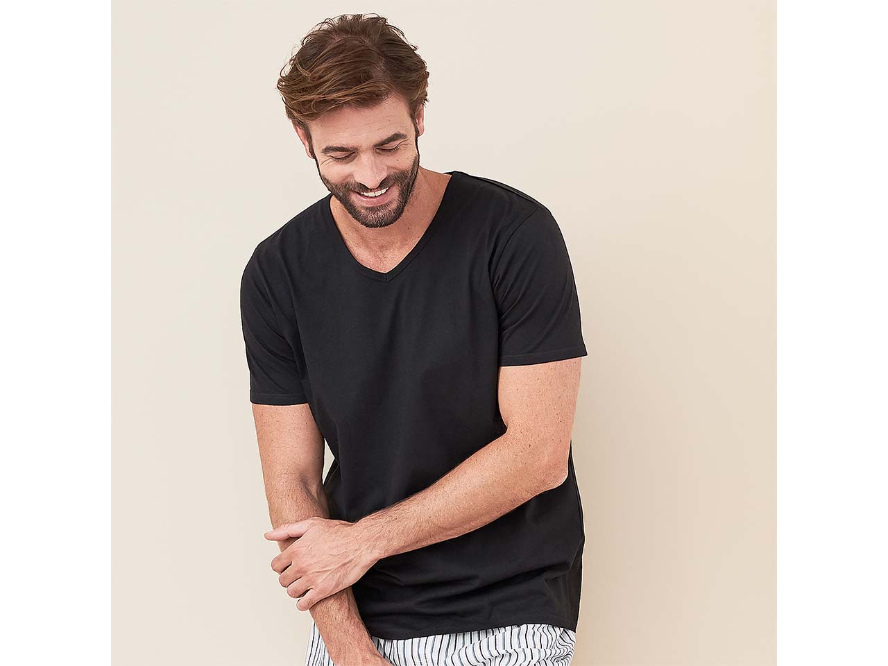 Ob unter Hemden und Pullovern oder einfach als lässiger Freizeit-Look, das T-Shirt ist ein angenehmer Begleiter. Die GOTS-zertifizierte Bio-Baumwolle in feiner, atmungsaktiver Jersey-Qualität fühlt sich wunderbar auf der Haut an. Zum hohen Tragekomfort tragen auch die leicht taillierte Passform und der etwas tiefer sitzende Ausschnitt bei. Im praktischen Doppelpack.