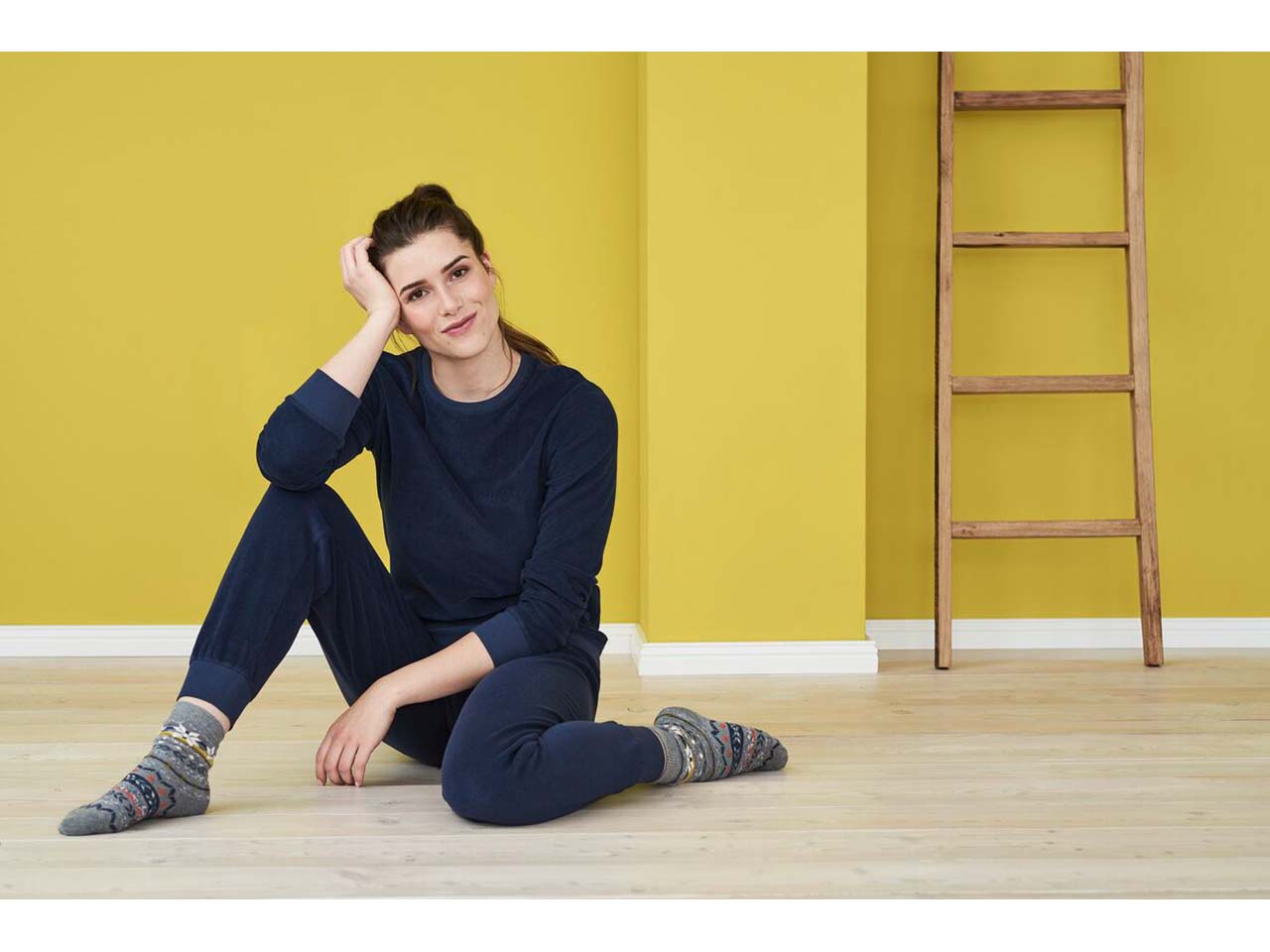 - Mit breiten, elastischen Rippbündchen