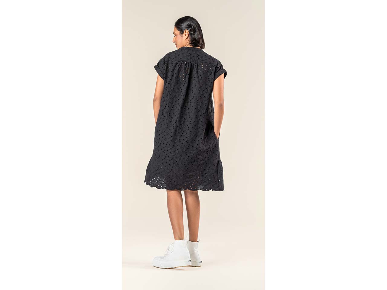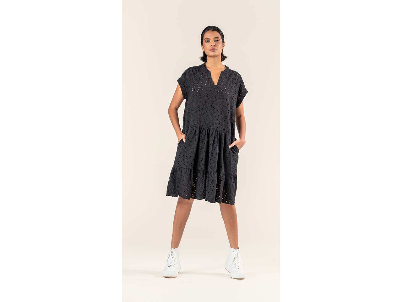 - Midi-Kleid mit raffiniertem Stickmuster