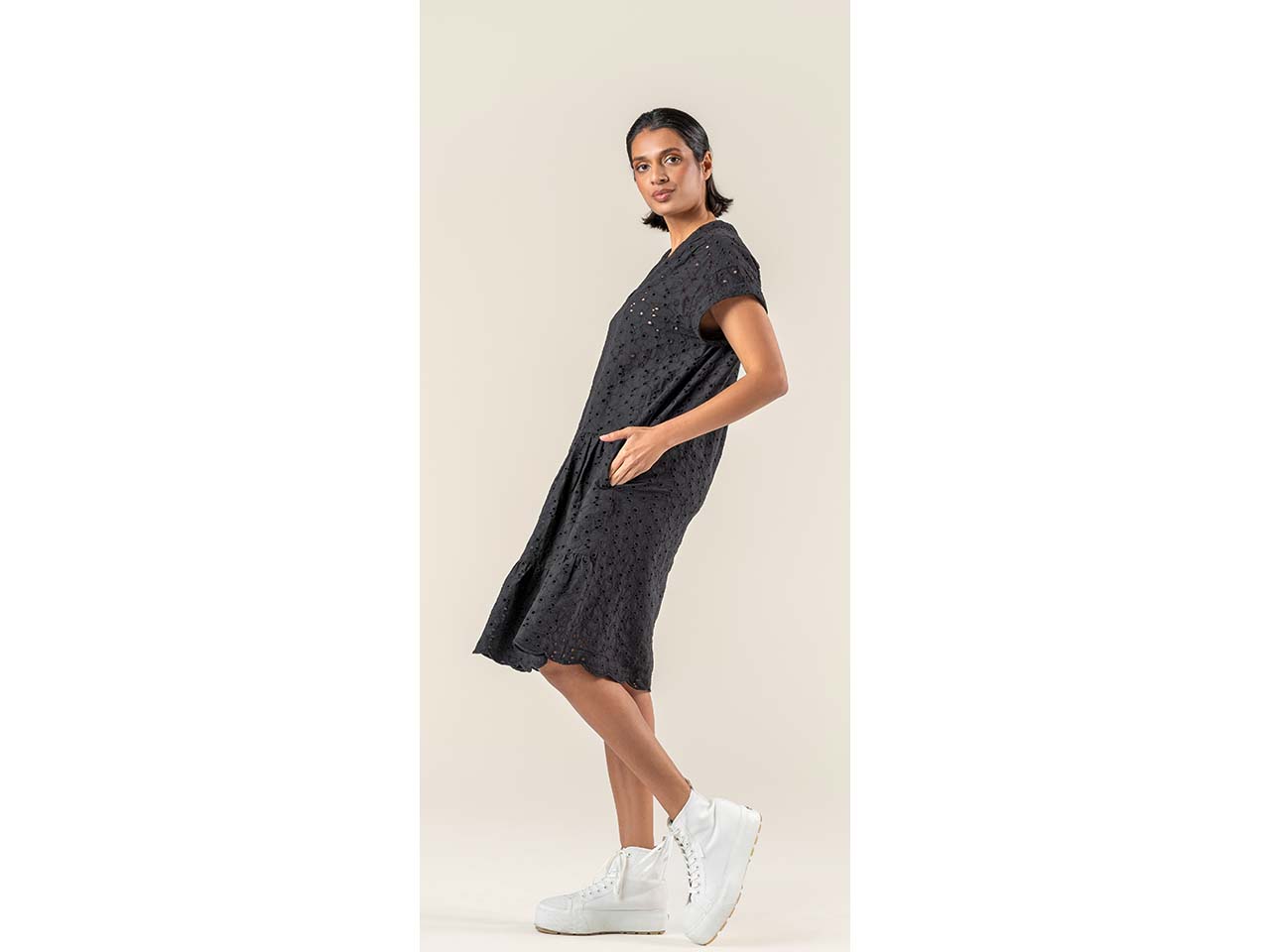 Midi-Kleid mit raffiniertem Stickmuster