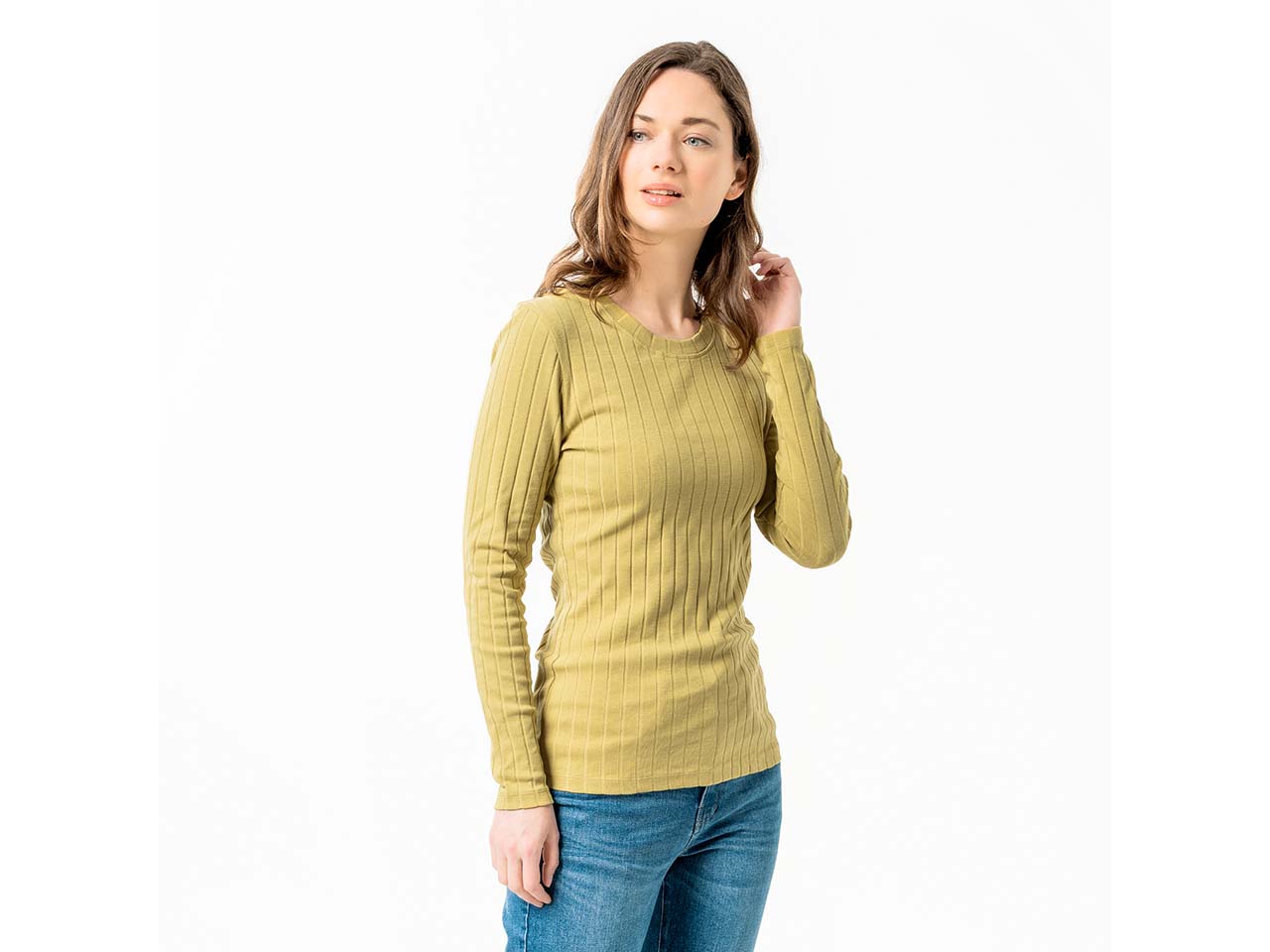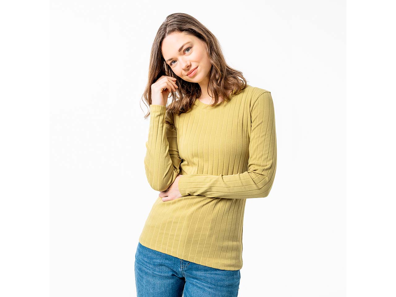 Modisch und bequem – so lässt sich dieses Langarmshirt am besten beschreiben. Es besteht aus GOTS-zertifizierter Bio-Baumwolle und einem kleinen Anteil Elasthan, der zur perfekten Passform beiträgt. Das Longsleeve mit breiter Rippenstruktur schmiegt sich eng an den Körper an und macht jede Bewegung mit. Das Oberteil kann für sich allein oder als zusätzliche Schicht unter einem Pullover getragen werden.