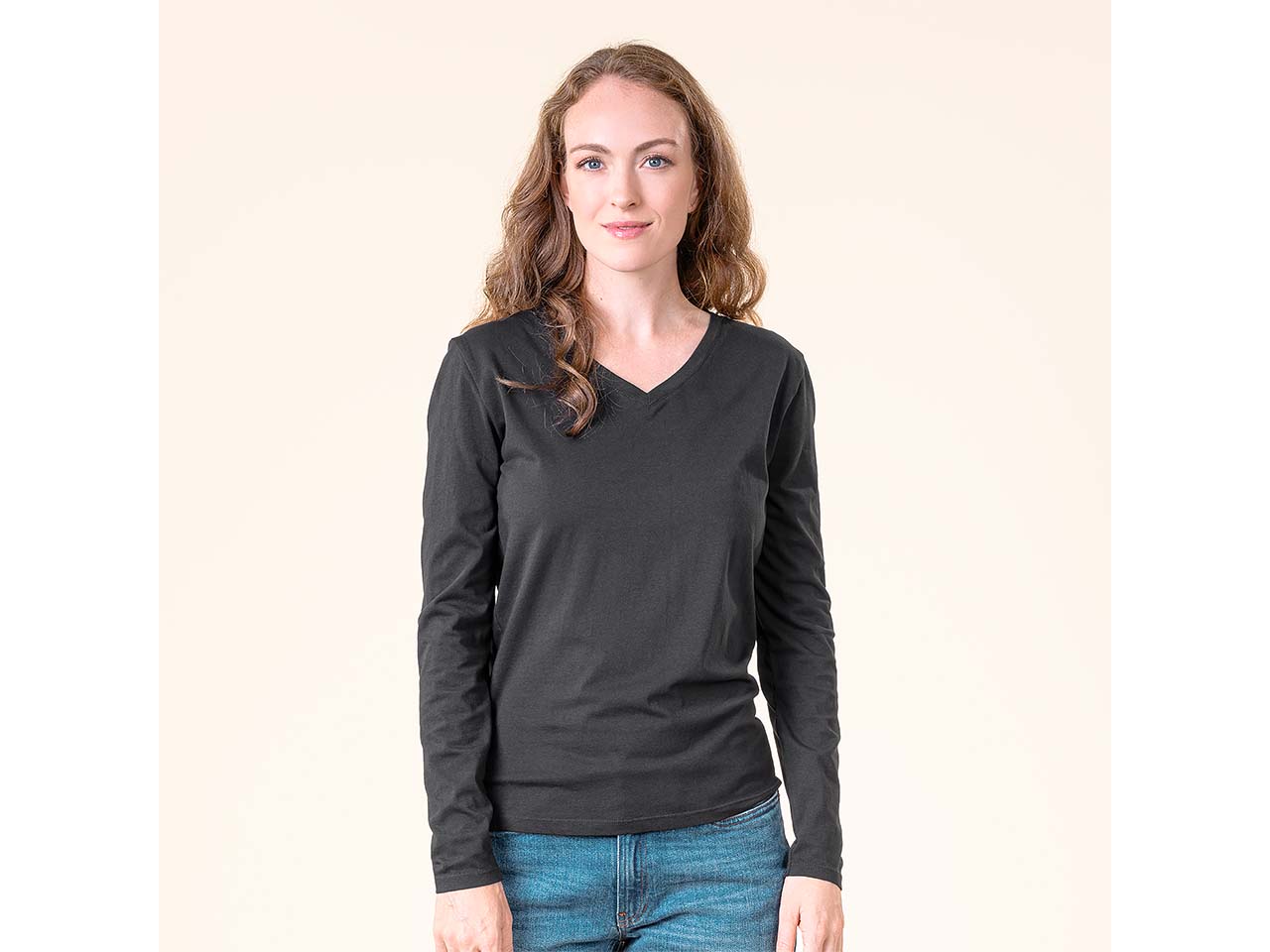 Living Crafts Bio-Damen-Langarmshirt "TARANA" mit V-Ausschnitt
