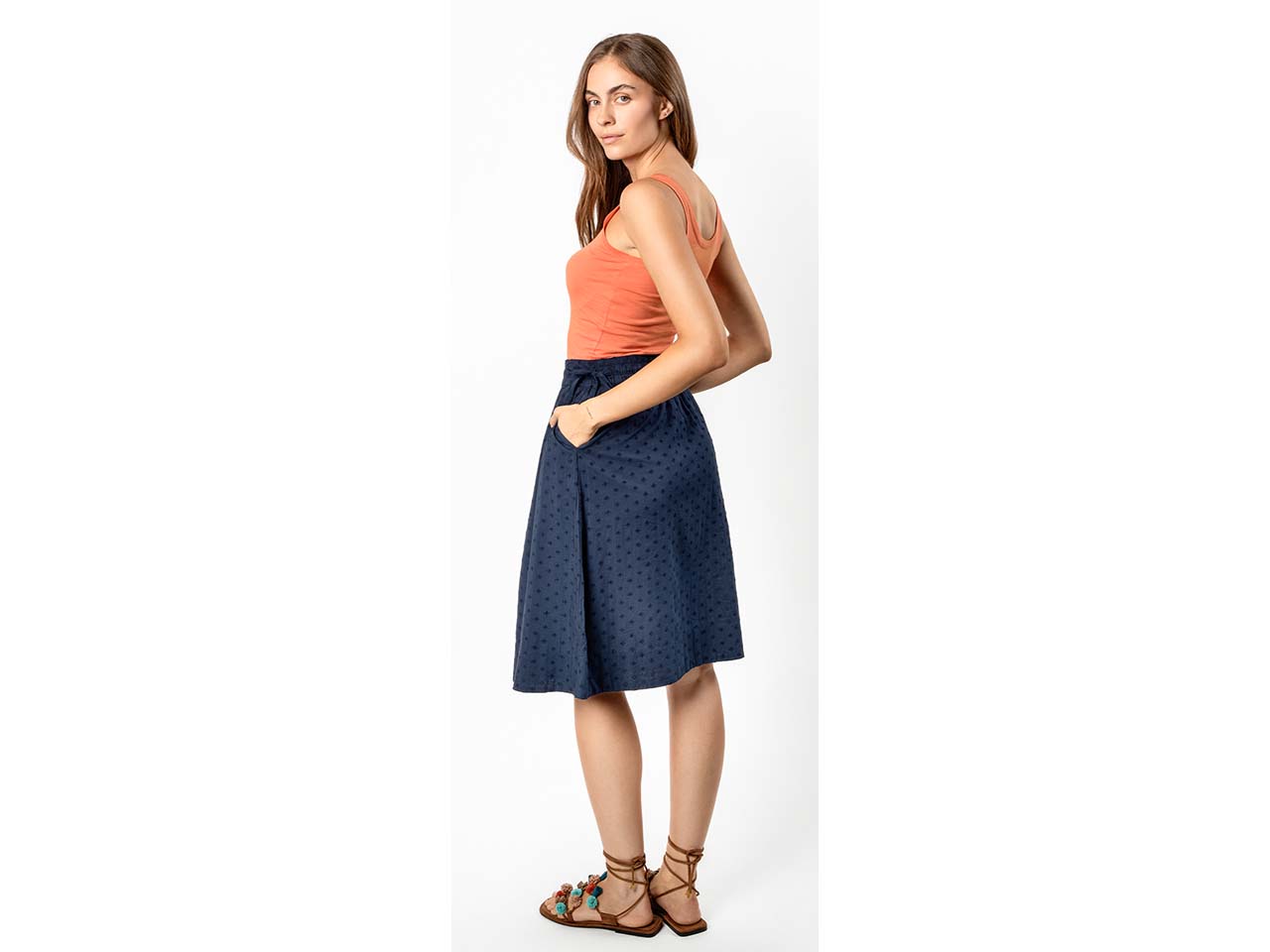 Living Crafts Bio-Damen-Midi-Rock "ANDALA" mit besticktem Batist
