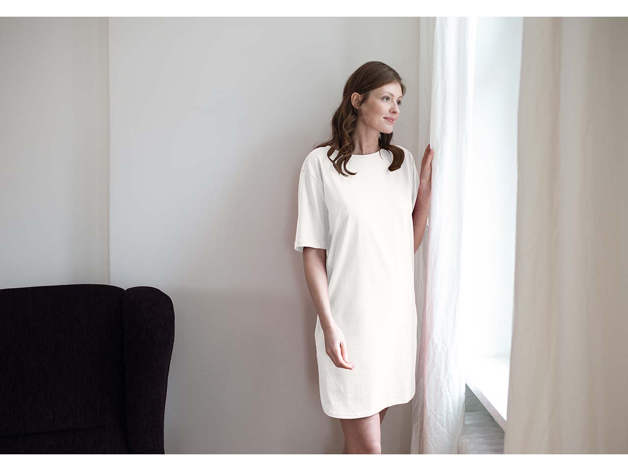 Loose Fit für ganz viel Bewegungsfreiheit beim Schlafen und Träumen! Das minimalistisch gestaltete Nachthemd punktet mit der weichen Single-Jersey-Qualität aus 100 % GOTS-zertifizierter Bio-Baumwolle. Das leichte, lockere Material engt nicht ein und sorgt so für eine angenehme Nachtruhe. Noch mehr Tragekomfort entsteht durch die Halbarmlänge und die langen Seitenschlitze. Tipp: In kühlen Nächten lässt sich das Nachthemd auch mit einer Schlafhose kombinieren.