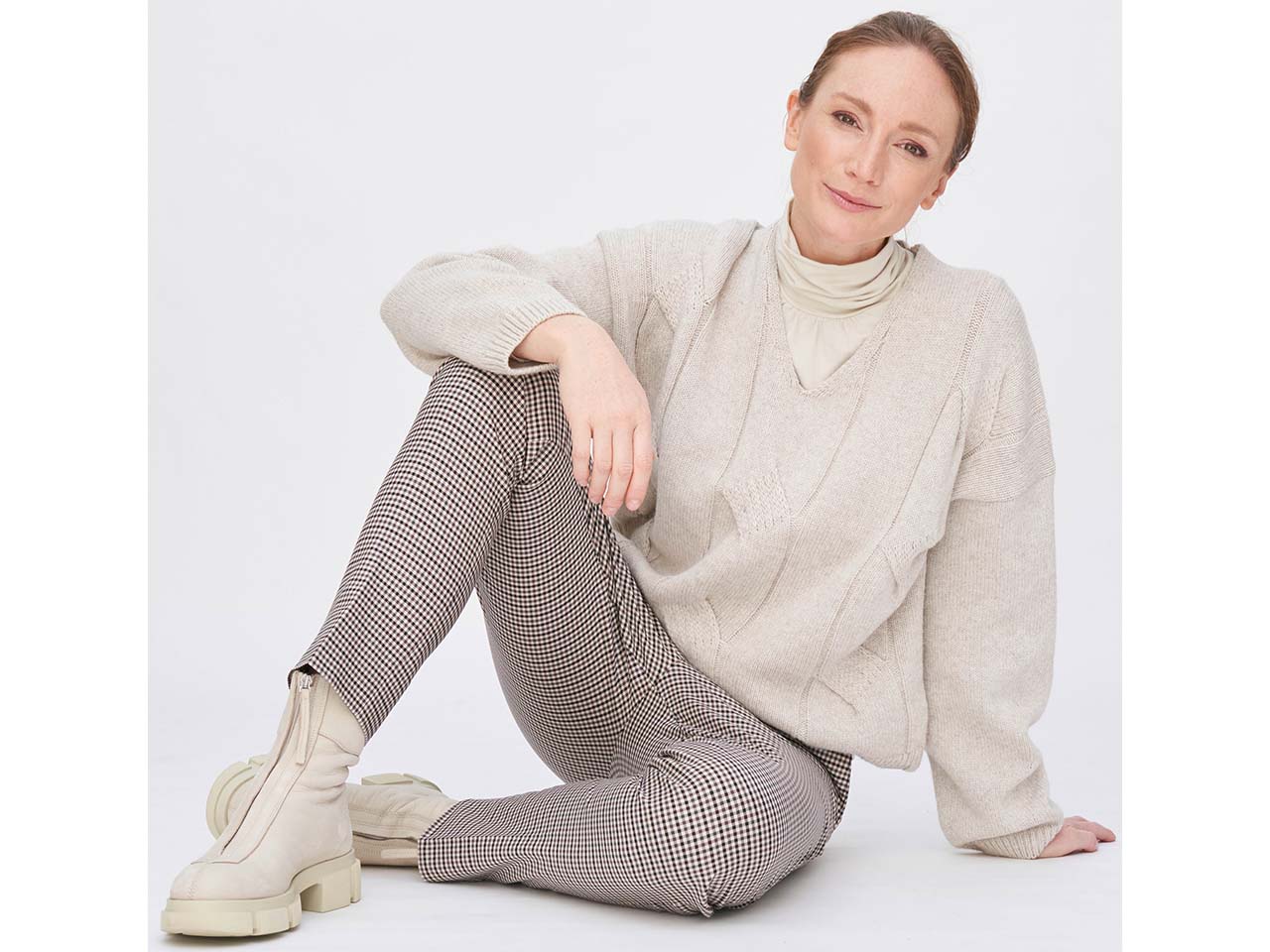 Ein Pulli, in dem man sich sofort wohlfühlt! Dafür sorgt der hochwertige Materialmix, der dank GOTS-zertifizierter Bio-Baumwolle und mulesing-freier Bio-Wolle kuschelweich ist. Beim modischen Look wurden keine Abstriche gemacht, denn der kurze Schnitt, die überschnittenen Schultern und die Oversized-Passform liegen voll im Trend. Blickfang ist das detailverliebte Strickmuster auf dem Pulli. Der V-Ausschnitt rundet die Optik perfekt ab.