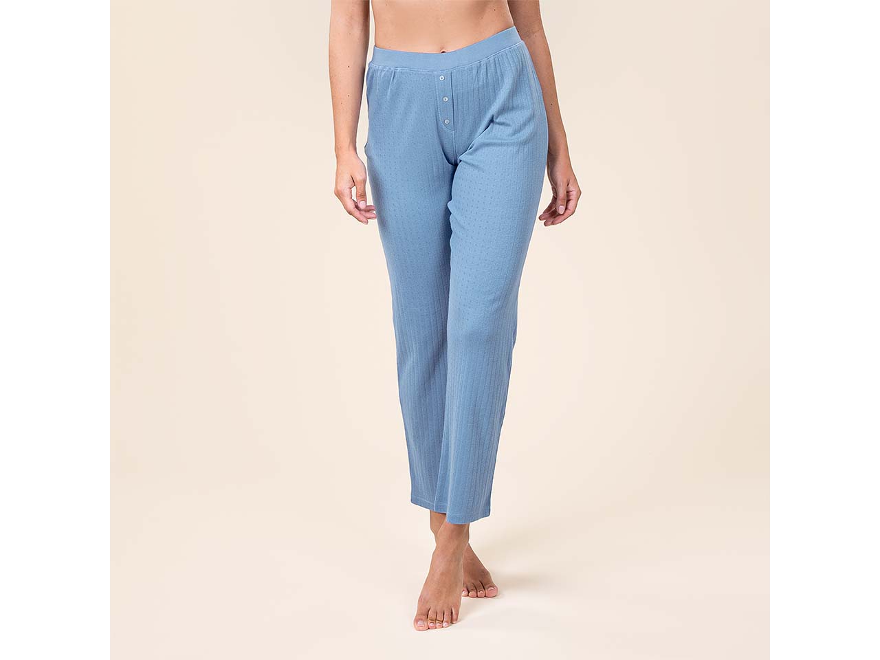 Traumhaft bequemer Tragekomfort: Die Schlafhose besteht aus hochwertigem Jersey aus GOTS-zertifizierter Bio-Baumwolle. Dadurch fühlt sich der Stoff besonders weich auf der Haut an. Optisch punktet die Schlafhose mit elegantem Ajour-Muster. Hoher Tragekomfort entsteht auch durch den elastischen Bund. Highlight sind die echten Perlmuttknöpfe, die die elegante Optik unterstreichen.