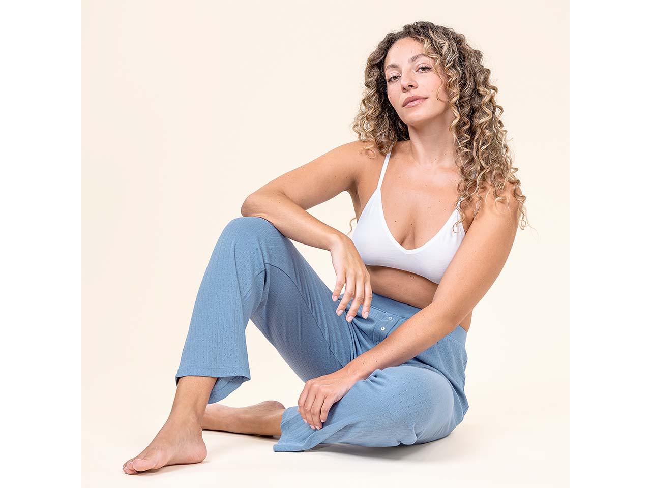 Traumhaft bequemer Tragekomfort: Die Schlafhose besteht aus hochwertigem Jersey aus GOTS-zertifizierter Bio-Baumwolle. Dadurch fühlt sich der Stoff besonders weich auf der Haut an. Optisch punktet die Schlafhose mit elegantem Ajour-Muster. Hoher Tragekomfort entsteht auch durch den elastischen Bund. Highlight sind die echten Perlmuttknöpfe, die die elegante Optik unterstreichen.