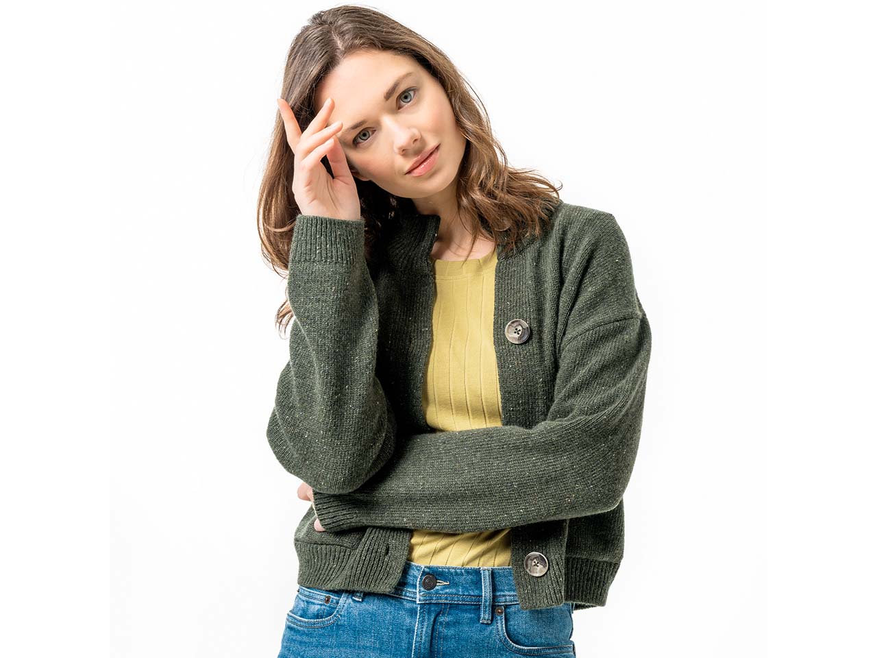 Moderne, GOTS-zertifizierte Strickjacke aus Wolle