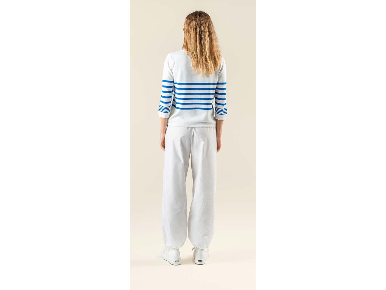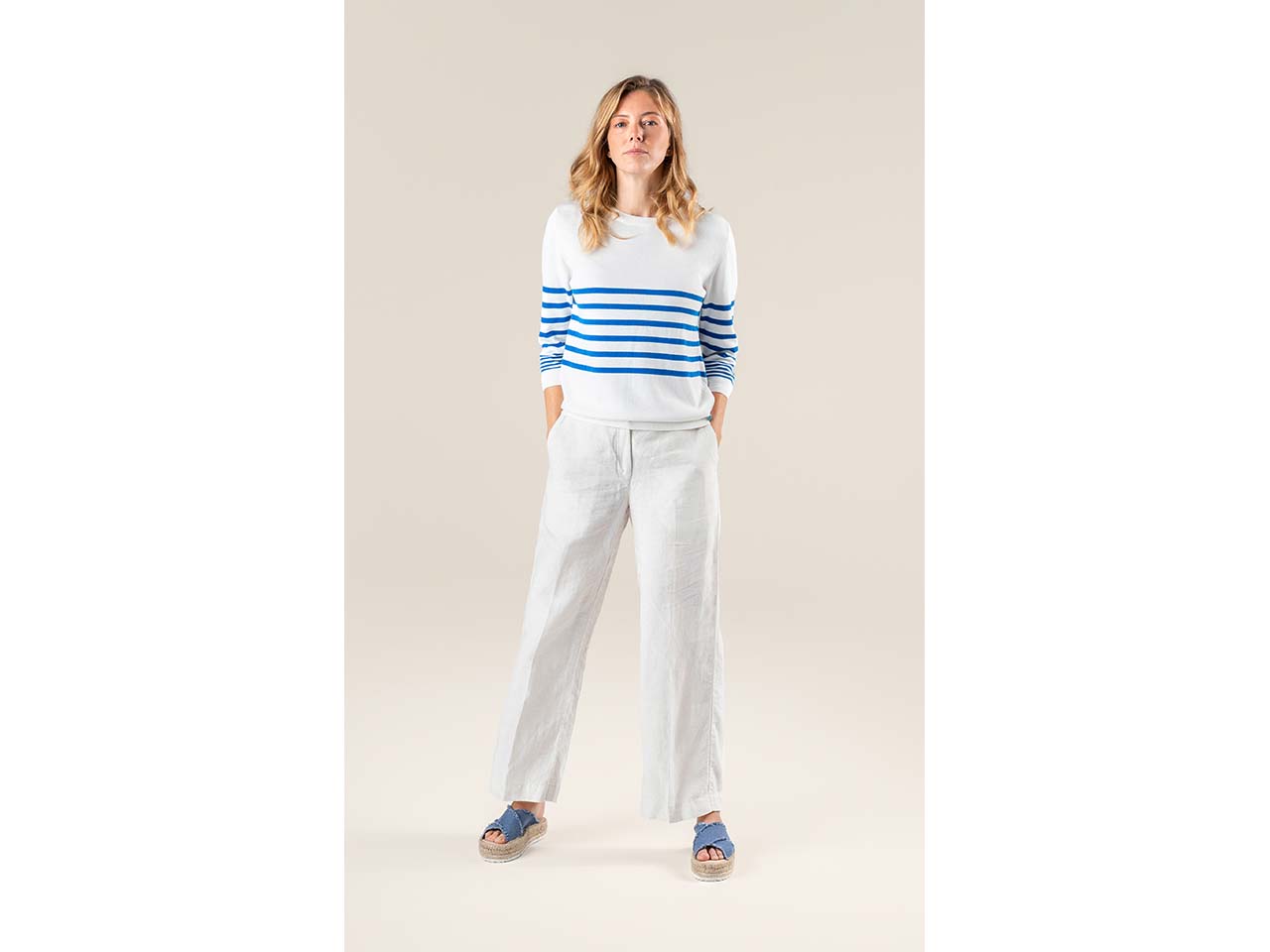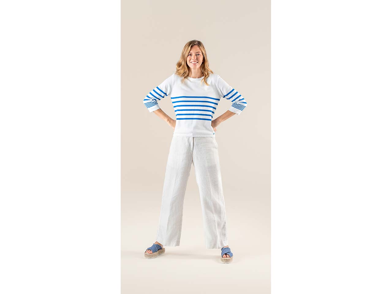 Warum zwischen lässigem Style und Tragekomfort entscheiden, wenn man auch beides haben kann? Dieser Pullover von Living Craft zeigt, wie es geht. Die GOTS-zertifizierte Bio-Baumwolle in Flachstrick-Qualität fühlt sich angenehm weich auf der Haut an. Durch den Casual fit sitzt das Oberteil auch sehr bequem. Der Streifen-Look ist frisch und modern, sodass der Pulli über viele Jahre Freude bereitet. Die 3/4-Ärmel machen aus dem Pulli das perfekte Kleidungsstück für Frühjahr und Sommer.