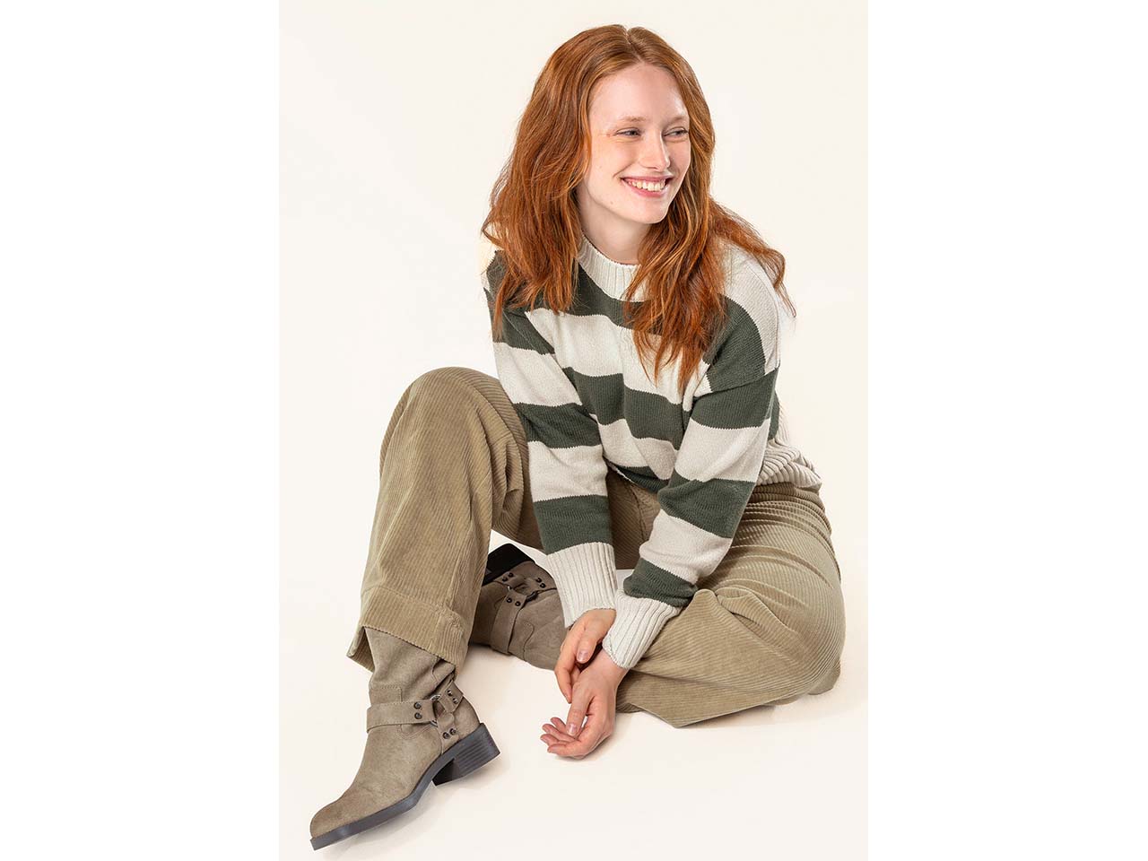 Dieser Strickpullover beweist, dass modischer Style und hoher Tragekomfort fantastisch zusammenpassen. Er besteht aus weicher, GOTS-zertifizierter Bio-Baumwolle und hat dank Slub-Garn eine grobe Garnstruktur und Haptik. Der Style entsteht durch die zeitlosen Blockringel. Mit Stehkragen und Rippstrick-Bündchen ist der Pulli ein echter Allrounder in lässigem Schnitt, der sich wunderbar für entspannte Outfits eignet.