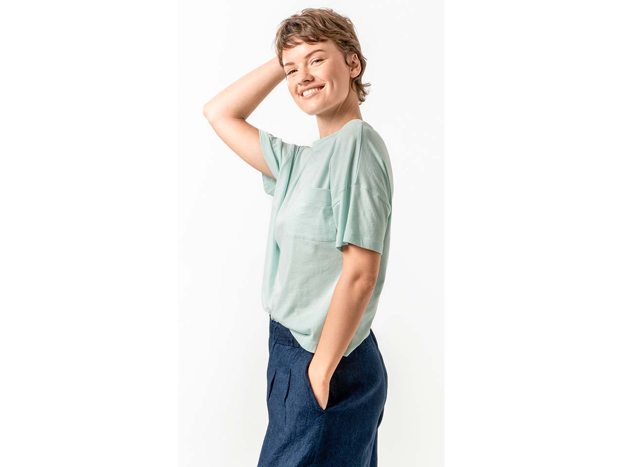 Dieses T-Shirt wird schnell zum neuen Lieblingsteil! Das Oberteil aus GOTS-zertifizierter Bio-Baumwolle ist lässig geschnitten, hat kurze Ärmel und stark überschnittene Schultern. Es bildet die perfekte Basis für lockere, sommerliche Outfits. Modisches Highlight des Single-Jersey-Shirts ist die praktische Brusttasche.