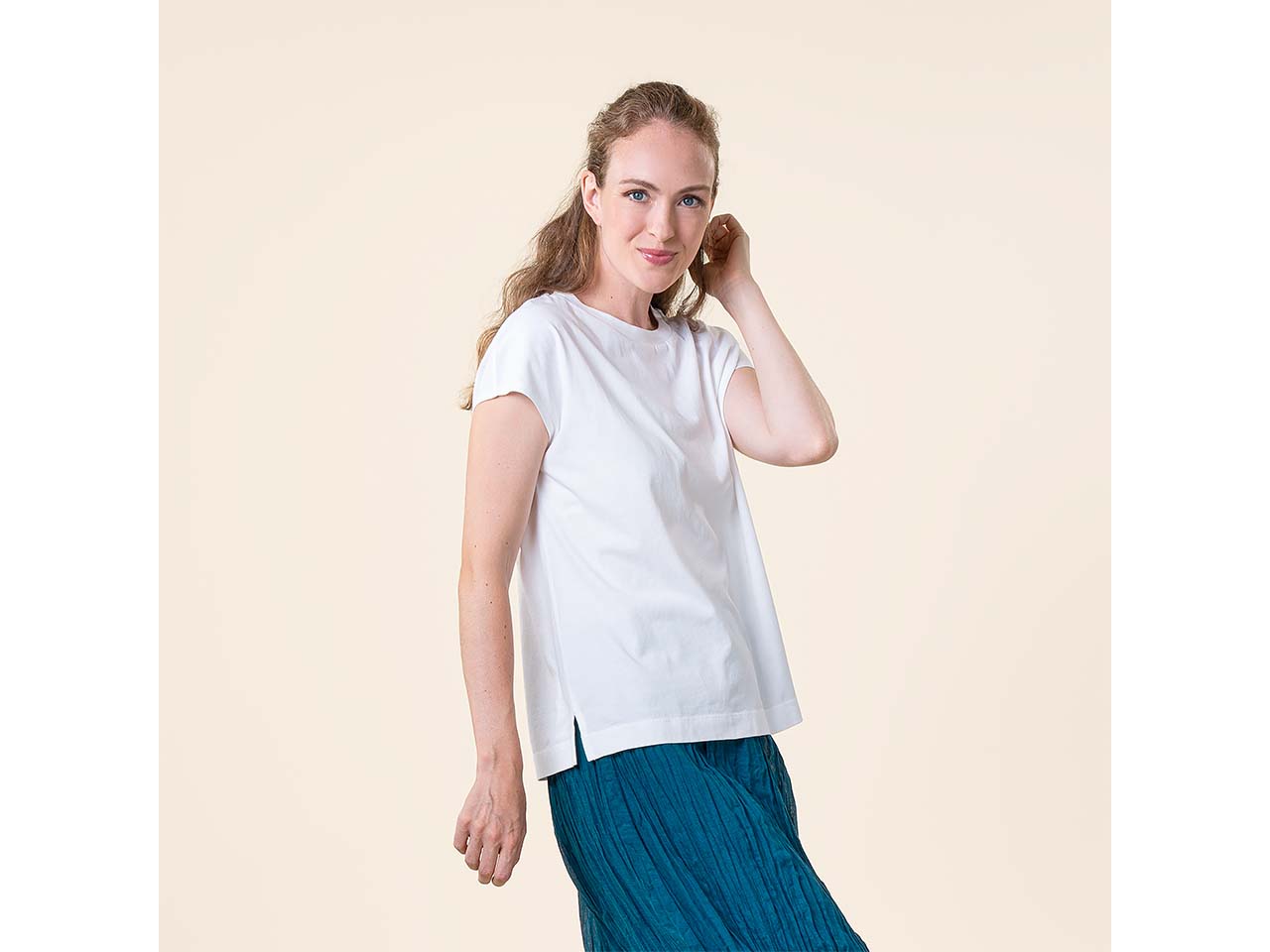 - Single-Jersey-Shirt mit überschnittenen Schultern