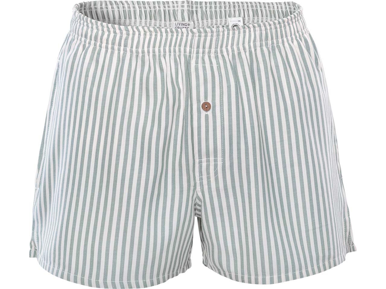 Diese Boxershorts vereinen Qualität und Komfort! Sie bestehen aus GOTS-zertifizierter Bio-Baumwolle und sind sehr weich. Die garngefärbte Streifenoptik sorgt für eine modische Optik. Praktisch: Die Boxershorts haben sogar praktische Seitennahttaschen! Der Knopf am Eingriff besteht aus Kokosnuss.