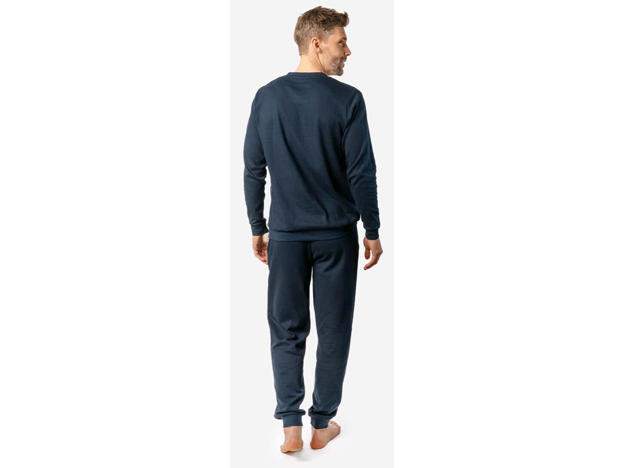 In diesem Schlafanzug fühlen sich Herren so richtig wohl! Die Interlock-Qualität aus Bio-Baumwolle verleiht dem Pyjama eine weiche Haptik. Der GOTS-zertifizierte Zweiteiler hat seitlich Taschen an den Hosen und einen komfortablen Rundhalsausschnitt am Oberteil. Dank elastischem Bund sitzt der Schlafanzug immer perfekt.