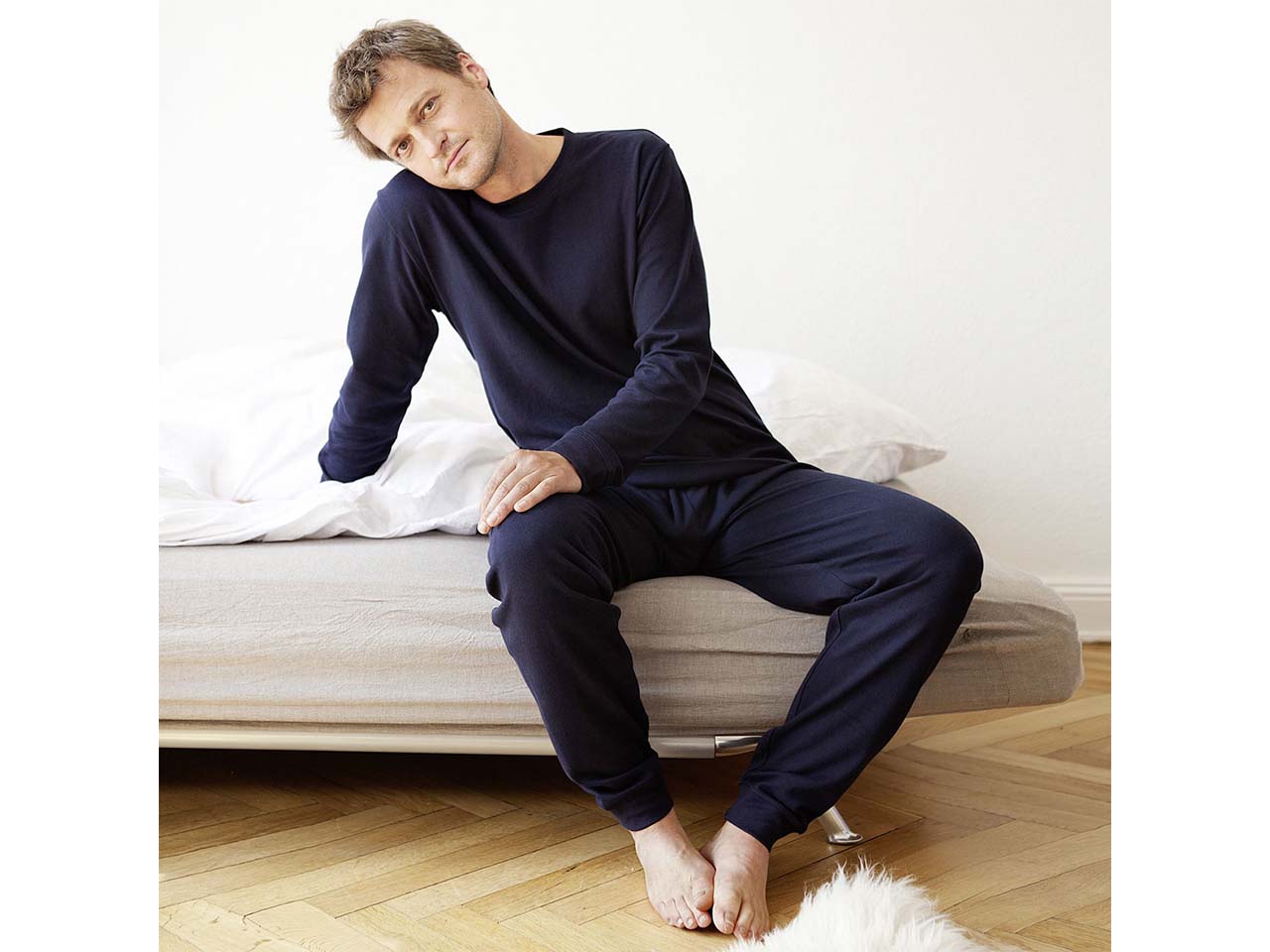 Einkuscheln und wohlfühlen: In diesem Schlafanzug schläft man einfach traumhaft gut! Weiches Interlock-Jersey aus GOTS-zertifizierter Bio-Baumwolle schmiegt sich an den Körper an und macht jede Bewegung mit. Damit der Pyjama dabei an Ort und Stelle bleibt, sind an Armen und Beinen breite Bündchen angebracht, die nicht einschnüren. Der klassische Schlafanzug mit Rundhalsausschnitt ist so bequem, dass man ihn auch als Hausanzug tragen kann!