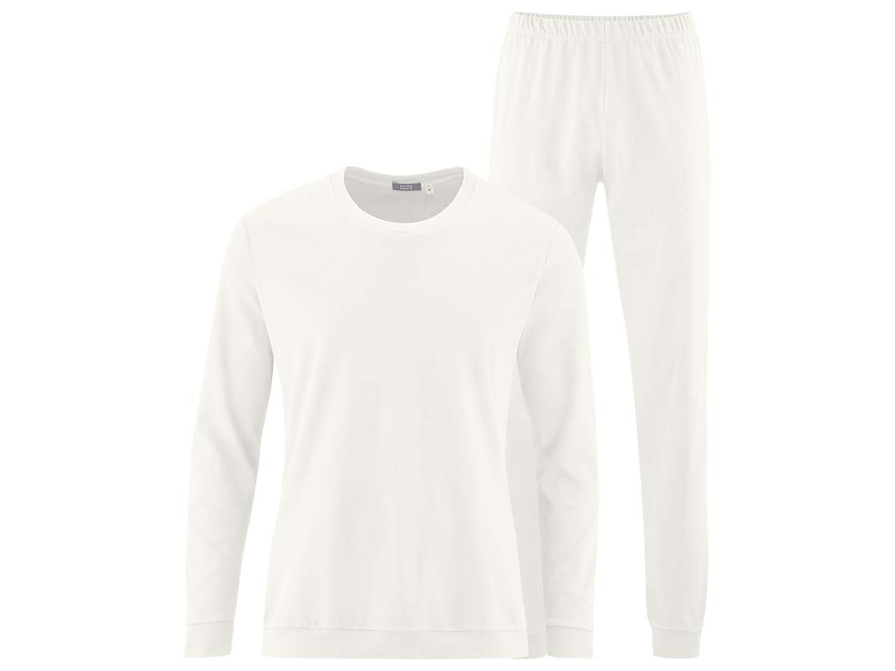 Einkuscheln und wohlfühlen: In diesem Schlafanzug schläft man einfach traumhaft gut! Weiches Interlock-Jersey aus GOTS-zertifizierter Bio-Baumwolle schmiegt sich an den Körper an und macht jede Bewegung mit. Damit der Pyjama dabei an Ort und Stelle bleibt, sind an Armen und Beinen breite Bündchen angebracht, die nicht einschnüren. Der klassische Schlafanzug mit Rundhalsausschnitt ist so bequem, dass man ihn auch als Hausanzug tragen kann!