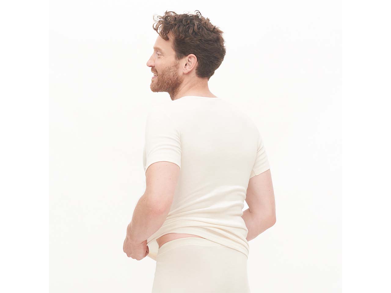 Dieses T-Shirt eignet sich hervorragend als Unterhemd – und ist doch viel mehr als das! Der hohe Tragekomfort entsteht durch den hochwertigen Feinripp aus GOTS-zertifizierter Bio-Baumwolle. Diese sorgt für ein sanftes Gefühl auf der Haut. Durch die enganliegende Passform ist das Oberteil ideal als zusätzliche Schicht, wenn es kalt ist. Das Essential ist so bequem, dass es auch als eigenständiges Shirt getragen werden kann.