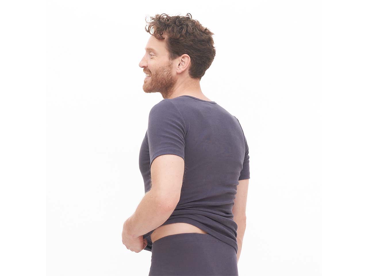 Dieses T-Shirt eignet sich hervorragend als Unterhemd – und ist doch viel mehr als das! Der hohe Tragekomfort entsteht durch den hochwertigen Feinripp aus GOTS-zertifizierter Bio-Baumwolle. Diese sorgt für ein sanftes Gefühl auf der Haut. Durch die enganliegende Passform ist das Oberteil ideal als zusätzliche Schicht, wenn es kalt ist. Das Essential ist so bequem, dass es auch als eigenständiges Shirt getragen werden kann.