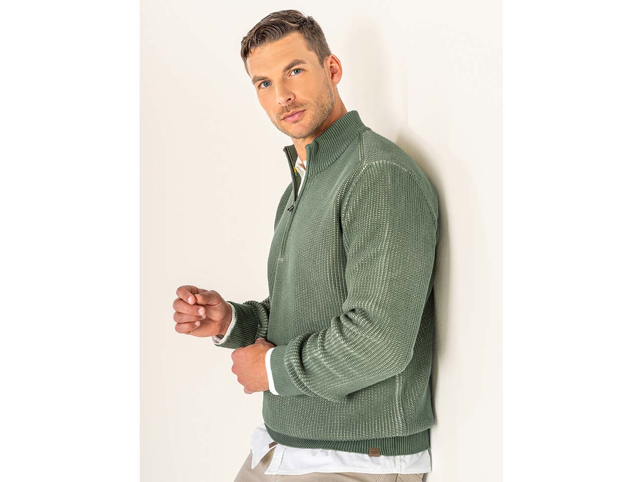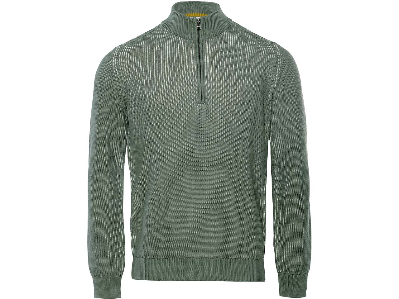 An kühlen Tagen wohlfühlen, ohne auf modische Optik zu verzichten? Dann gehört dieser Troyer in den Kleiderschrank! Der Pullover aus GOTS-zertifizierter Bio-Baumwolle hat einen praktischen Halb-Reißverschluss und ist regulär geschnitten. Das zweifarbige Strickmuster sorgt für einen zeitlosen Style, der sich vielseitig kombinieren lässt.